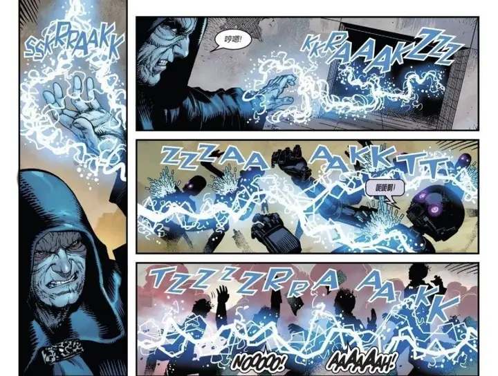 在電影EP3中,尤達就能在和帕爾帕庭的決戰中將共和國參議院攪得天翻地覆,徒手擋下帕爾帕庭的原力閃電,而在刪減片段中帕爾帕庭跑路時放的幾發原力閃電就能把巨大的參議院的整個樓頂炸燬。