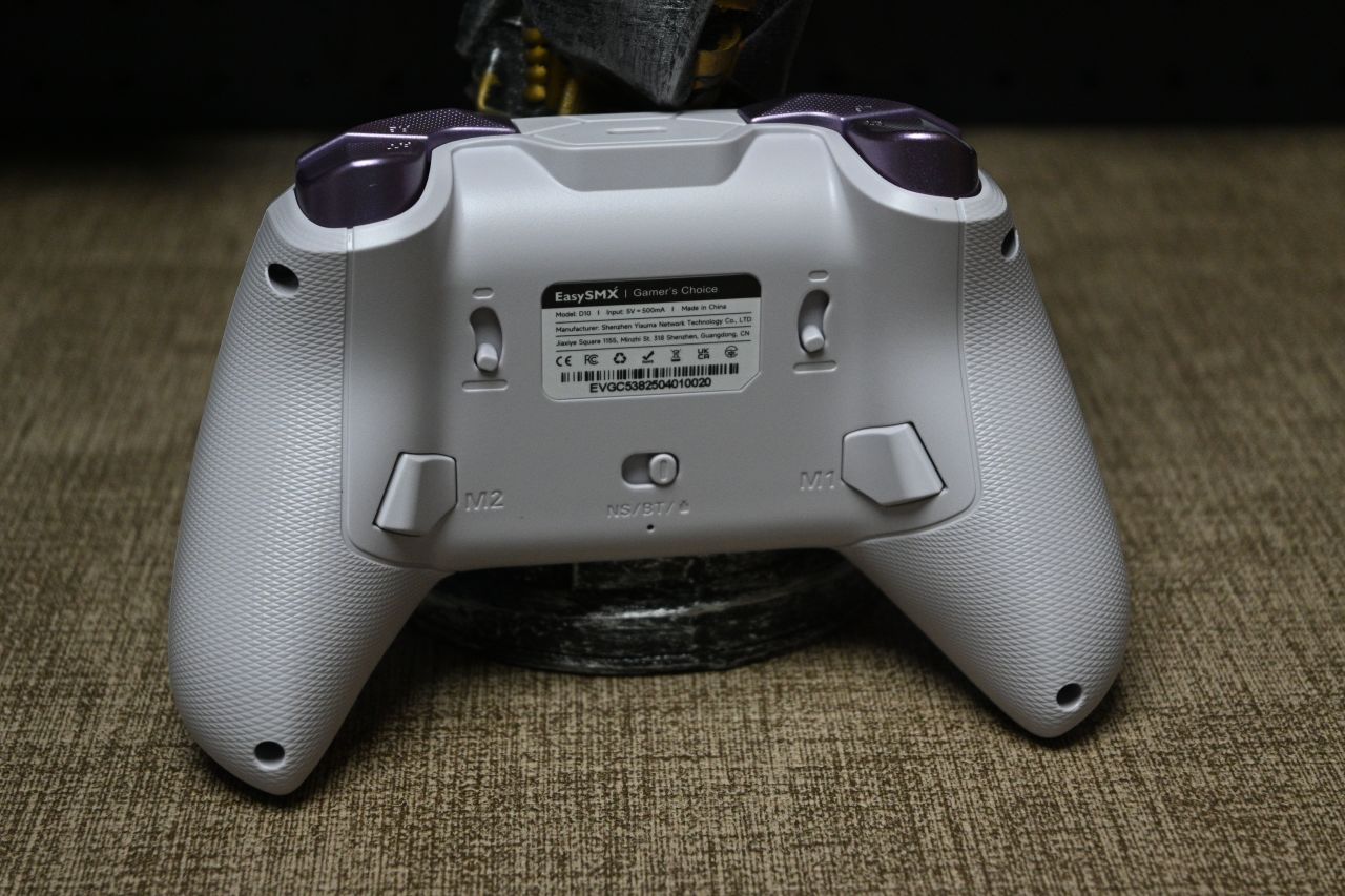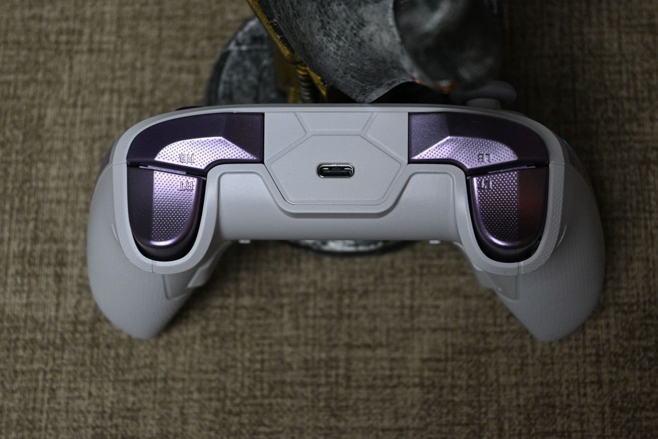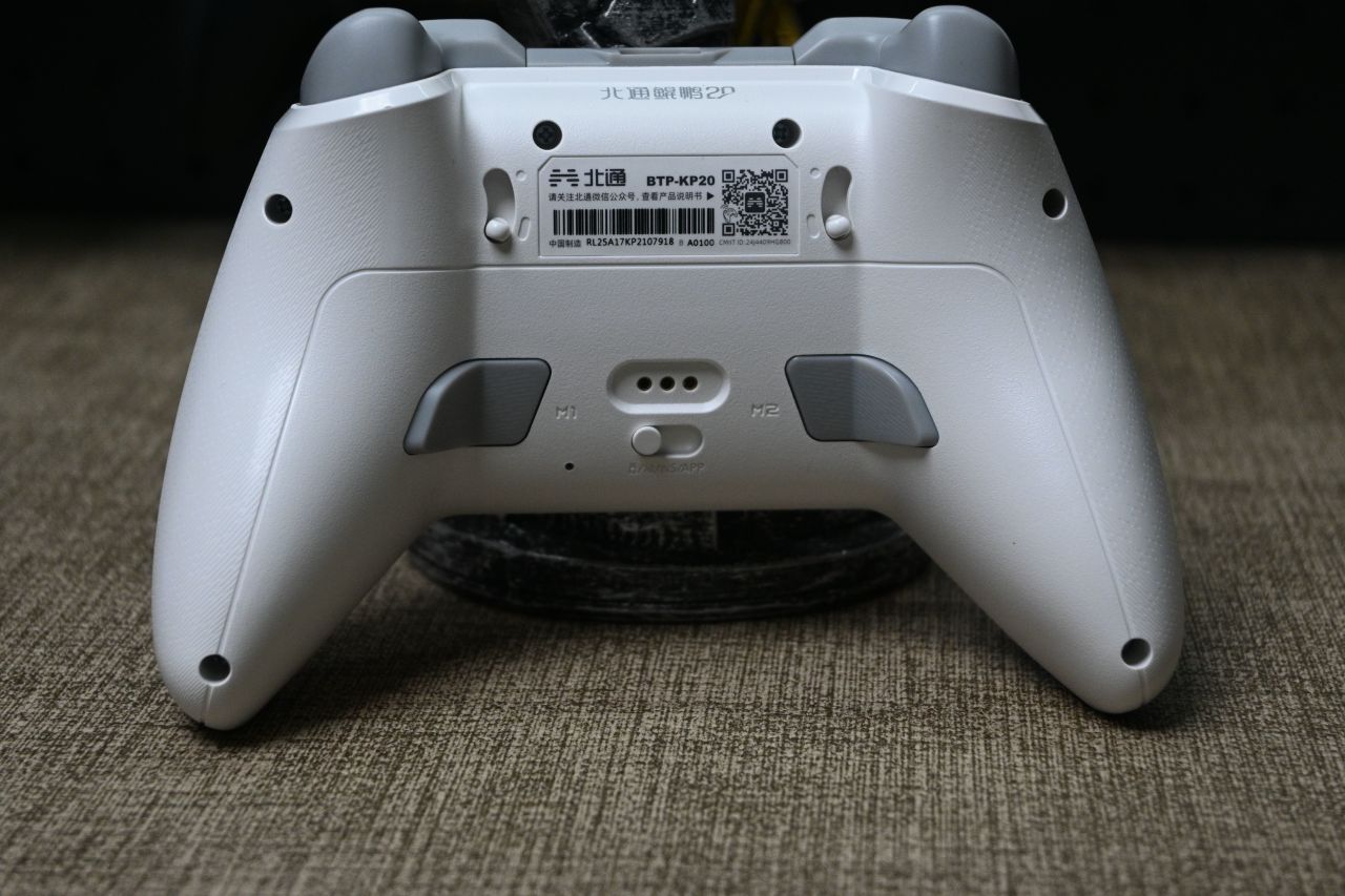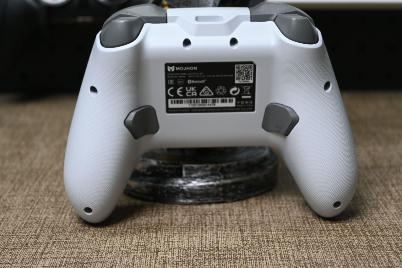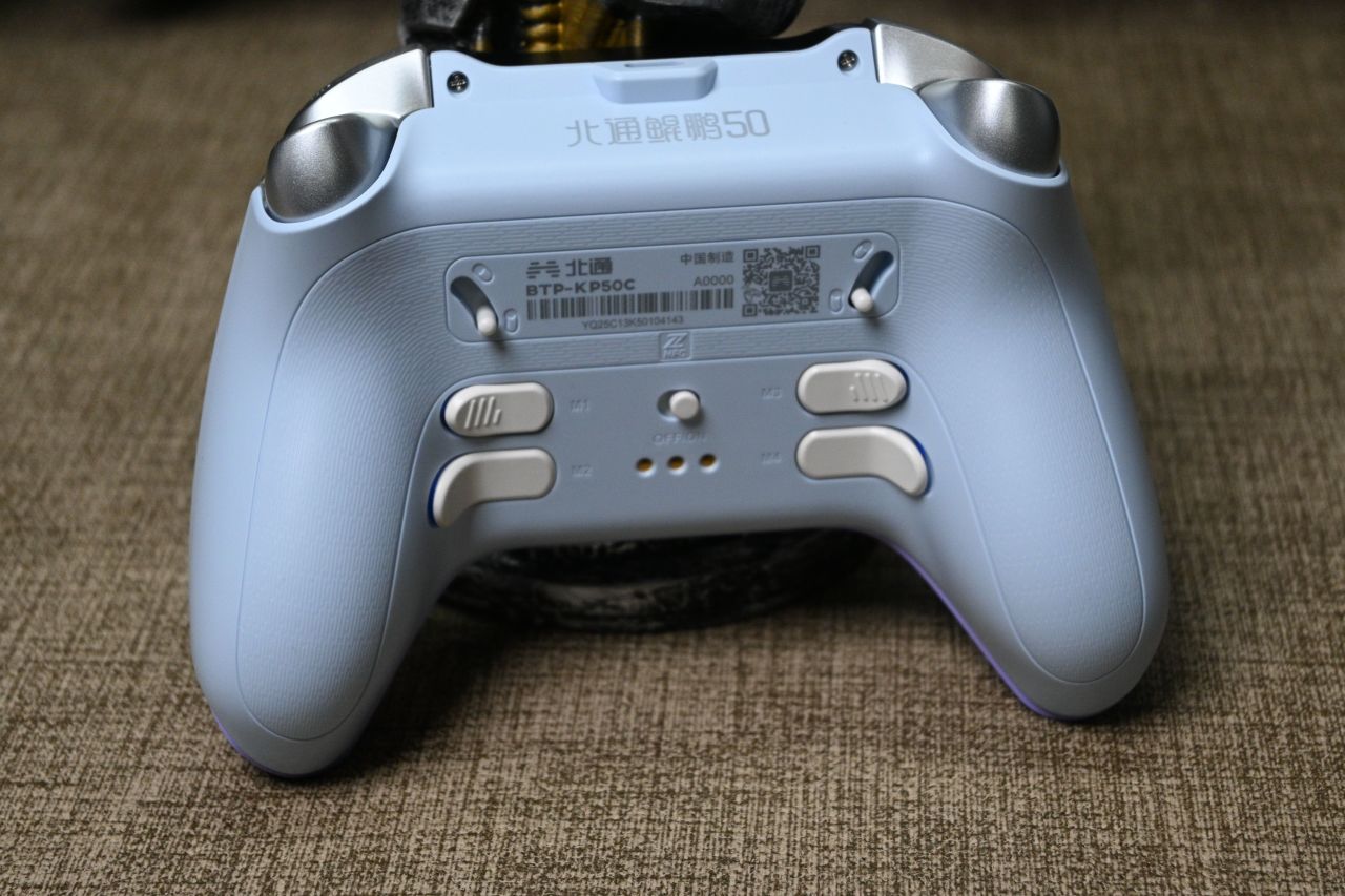 手柄的肩键及拓展肩键均采用微动按键,按压非常脆爽,手感一致性很强。扳机为霍尔线性扳机,可切换为微动快速扳机,四颗背键采用了与精英手柄同级的磁吸拨片,开关为轻触开关,按压反馈感很强烈。
