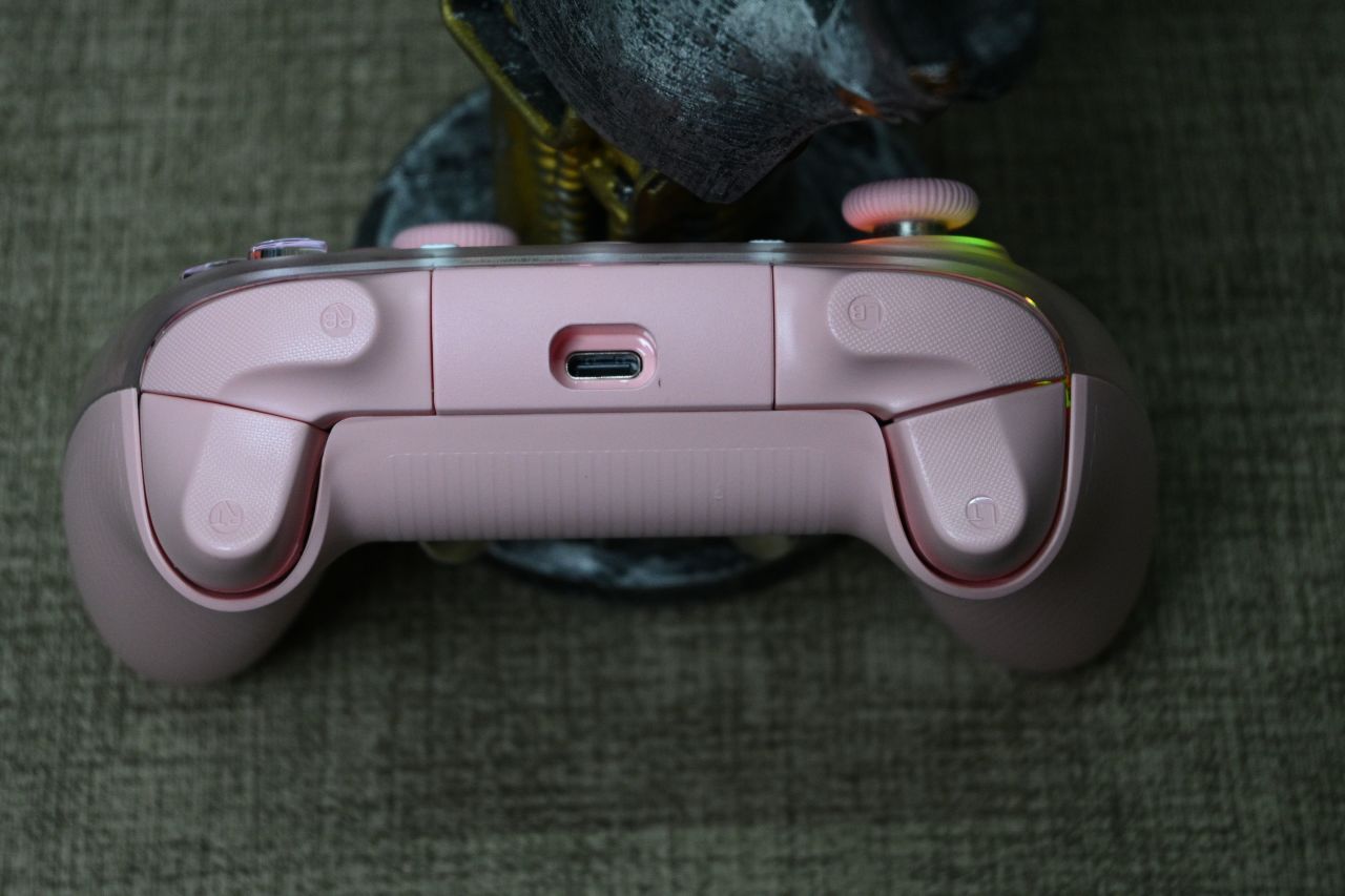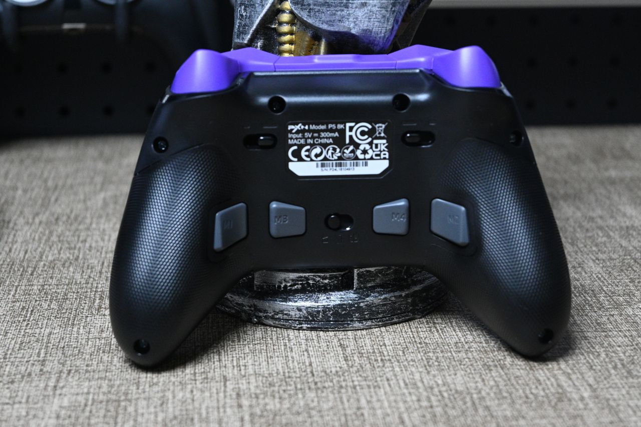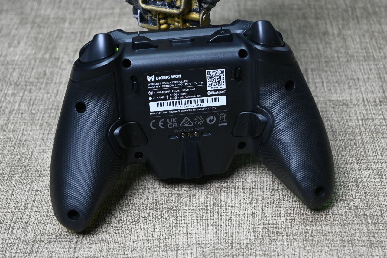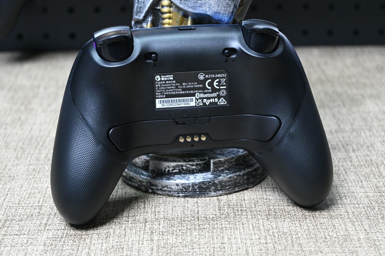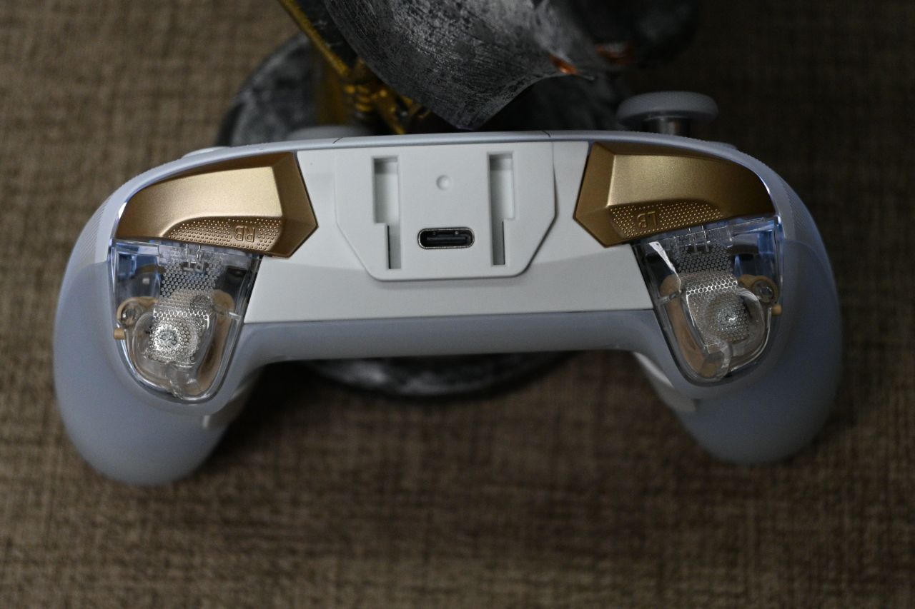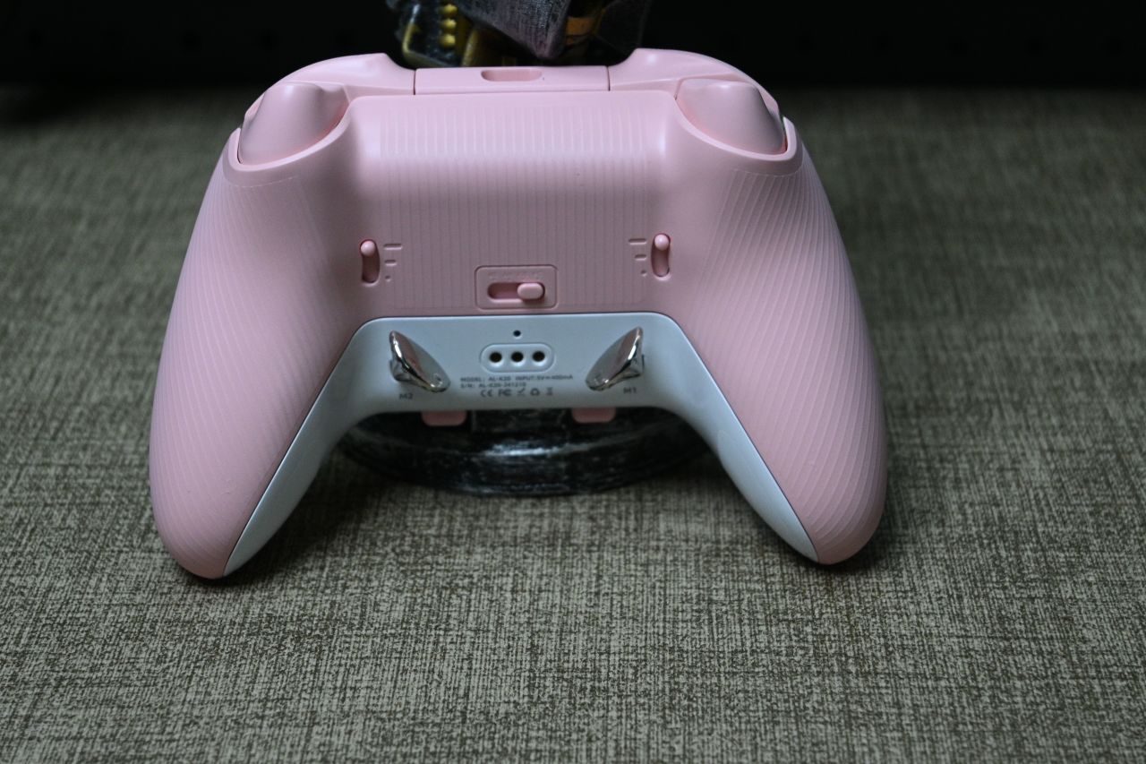 手柄的肩键及拓展肩键均采用微动按键,按压非常脆爽,手感一致性很强。扳机为霍尔线性扳机,可切换为微动快速扳机,四颗背键采用了与精英手柄同级的磁吸拨片,开关为轻触开关,按压反馈感很强烈。