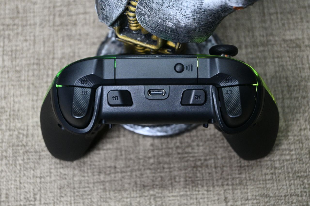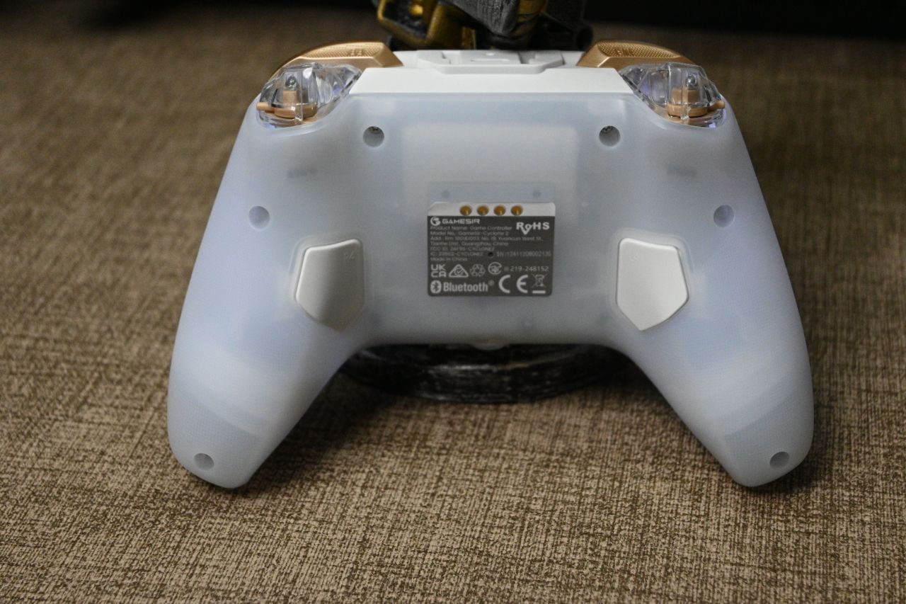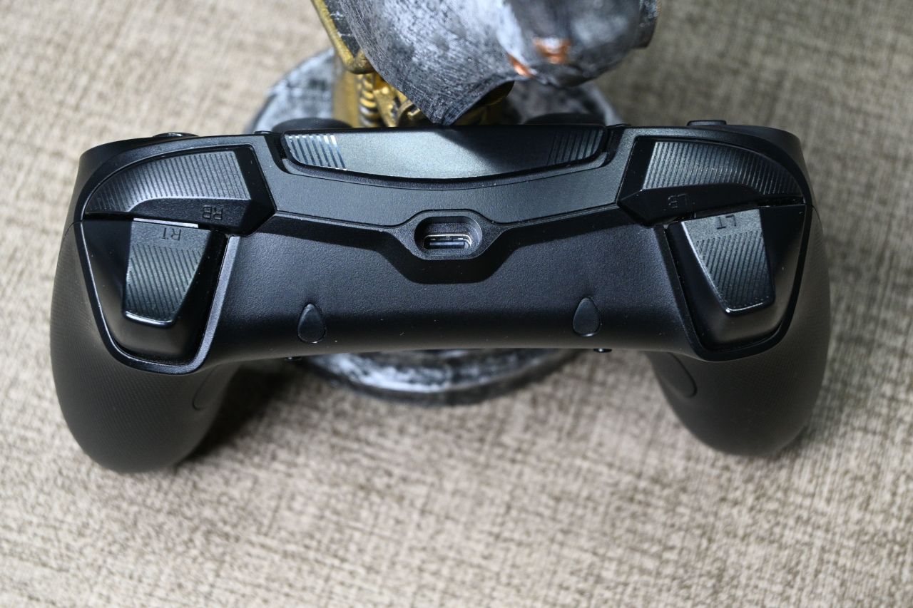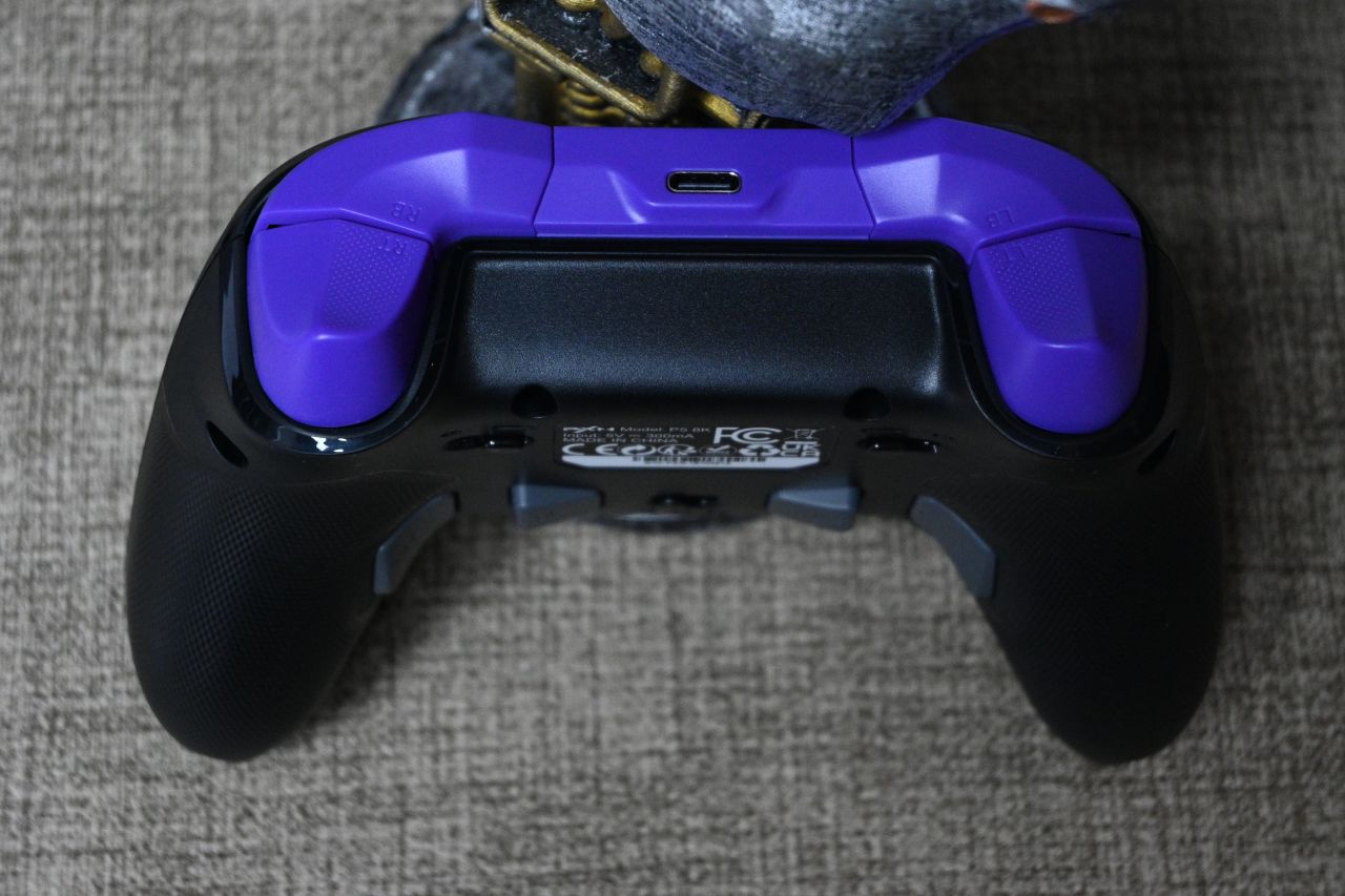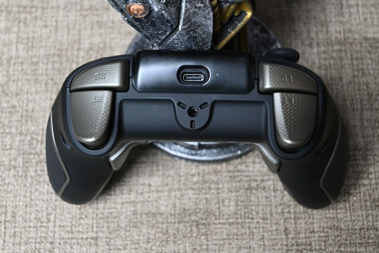 手柄的肩键及拓展肩键均采用微动按键,按压非常脆爽,手感一致性很强。扳机为霍尔线性扳机,可切换为微动快速扳机,四颗背键采用了与精英手柄同级的磁吸拨片,开关为轻触开关,按压反馈感很强烈。