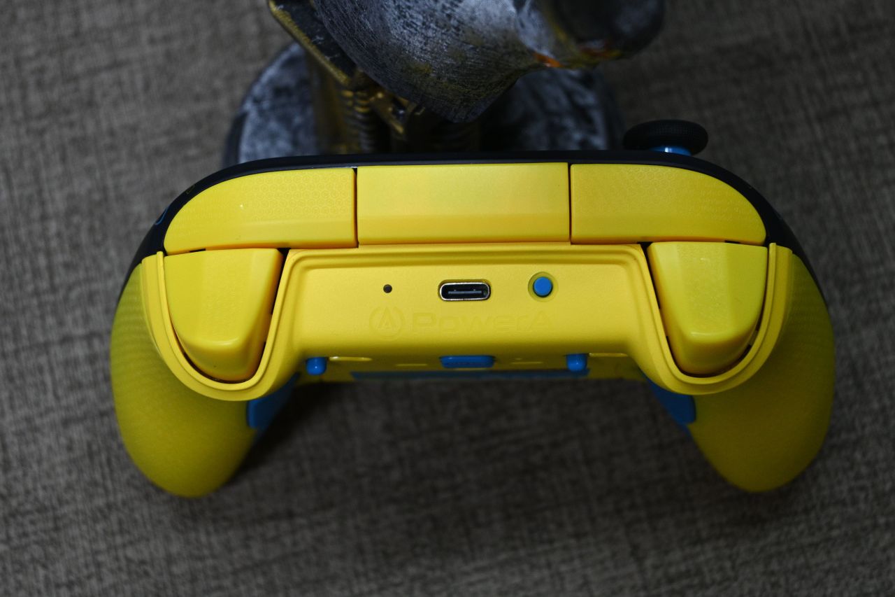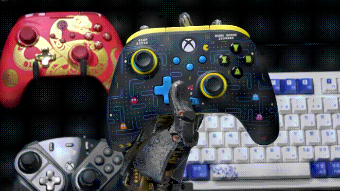 它是目前手柄圈内,最便宜的第三方xbox无线授权手柄。他还拥有稀有的吃豆人联名皮,颜值极佳。手柄配备霍尔摇杆跟霍尔线性扳机,内置握把震动马达及扳机震动马达。他有4个可映射按键的背键,三段式扳机锁。手柄底部还有个3.5mm接口,支持无线音频。