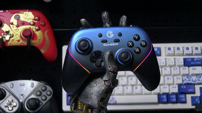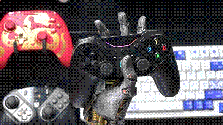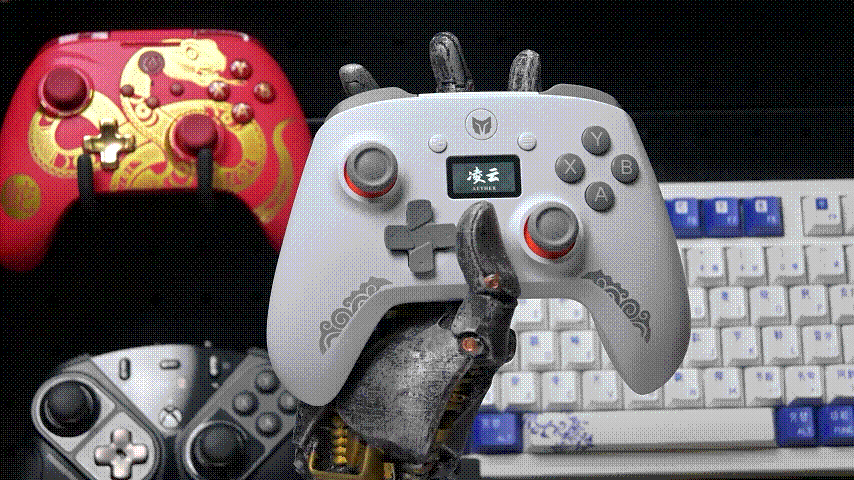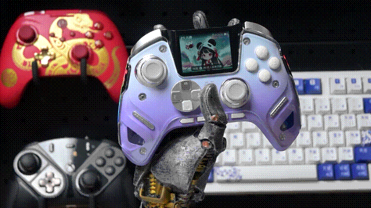 曾经的百元王者,到现在依旧雄姿不减。手柄支持三模连接方式,双霍尔,两段式扳机锁,两个轻触开关背键。内置六轴陀螺仪,支持switch一键唤醒。双1000Hz轮询率,包胶握把,贯穿式rgb灯带。磁吸面壳可更换,动作键可拆卸更换,可选配智能启停底座。