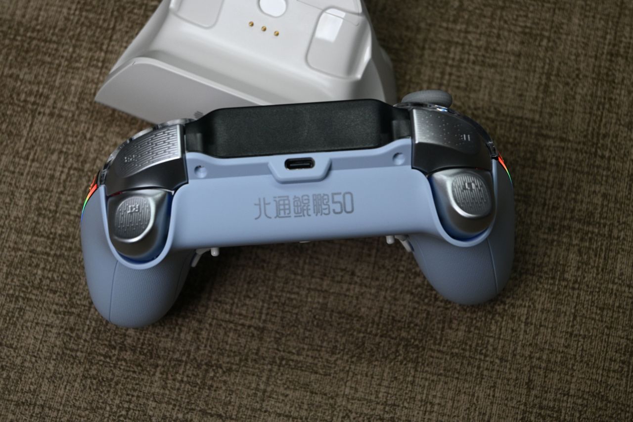 经过近几年的变革,北通的鲲鹏系列也逐渐被大众所接受,而在手柄端厮杀最惨烈的百元价位,北通的代表选手是鲲鹏20。他的竞争力很强,三模,多平台适配,搭载TMR摇杆,机械按键动作键,轻触开关十字键、肩键及双背键。霍尔线性扳机,两段式扳机锁,双1000Hz轮询率。带三区域氛围灯。如果是带底座的版本,底座是支持无线充电跟智能启停的。关键是叠完优惠券之后最低100出头就能拿下,性价比爆炸。