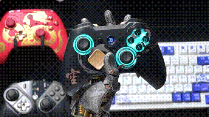 手柄的优点很多,按键调教自不必说,而我最喜欢的还是它的握持手感及一些设计上的巧思首先,超多拓展键一用就回不去了。可伸缩的背键是好文明,不用的时候把它收回去,握持手感一级棒。通过组合键能把手柄的按键布局切换为NS,能够同时满足多平台玩家使用。且他的home灯、条形rgb灯、按键灯均可自由设置颜色。
