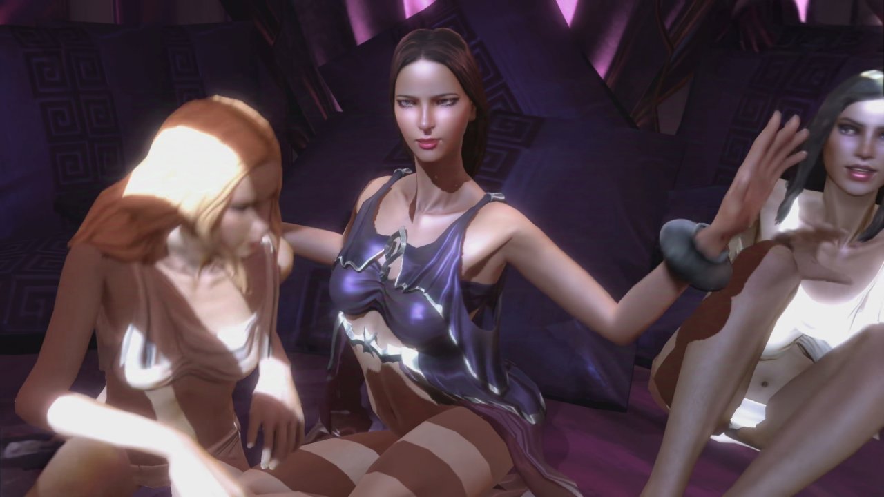 警惕地打开大门,想象中的众多敌人却并没有出现,奎托斯目光一扫而过,收入眼底的只有到处都是粉红色的房间、水晶吊灯在石壁上投下魅惑的光影,还有摆在中央那张巨大的床,别说杀气了,空气中反而到处弥漫着......暧昧的味道?