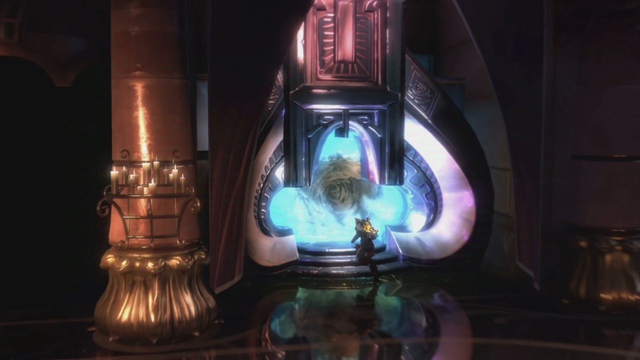 奥林匹斯广场的中央随着战斗的结束也彻底崩塌,奎托斯只能顺着下水道一直往前游,结果误打误撞来到了海神波塞冬的寝宫。