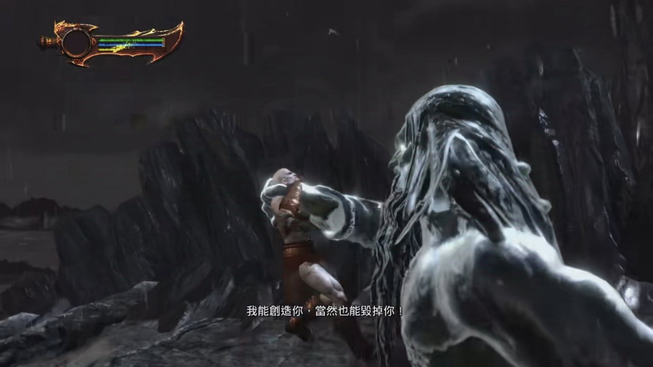 上一秒还奄奄一息的奎托斯突然爆发生机,挣脱了宙斯灵魂体的大手,以混沌之刃为媒介,用宙斯闻所未闻的独特力量将其打回肉身之中。