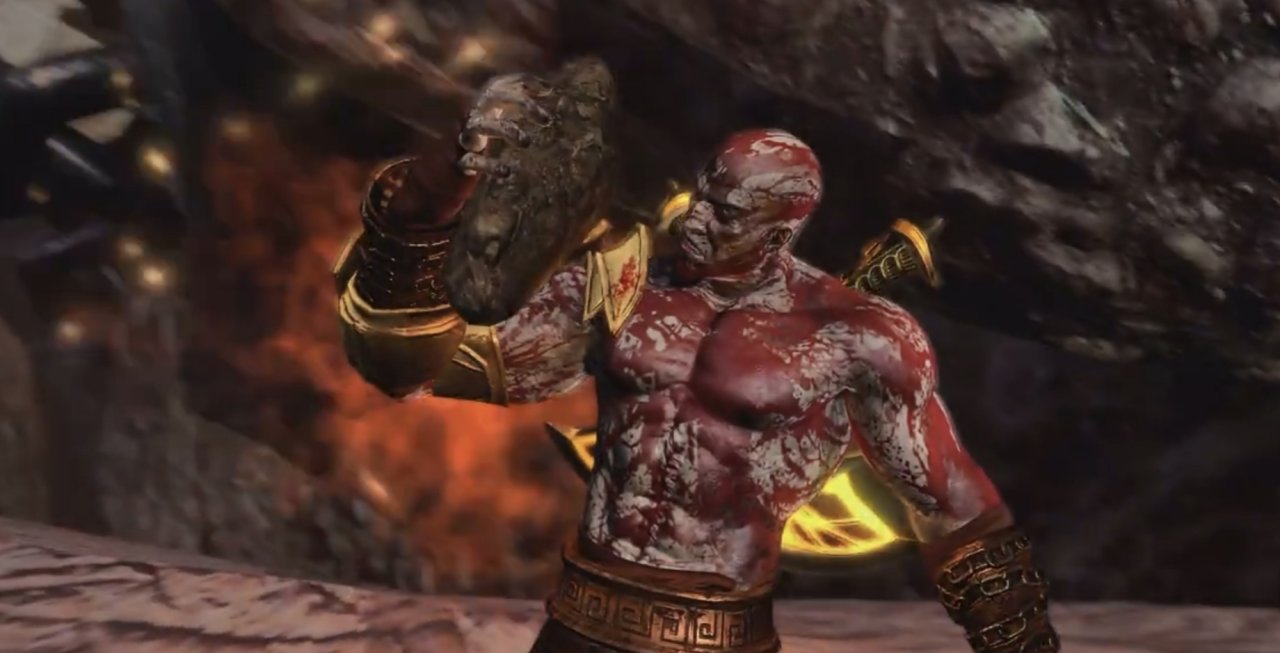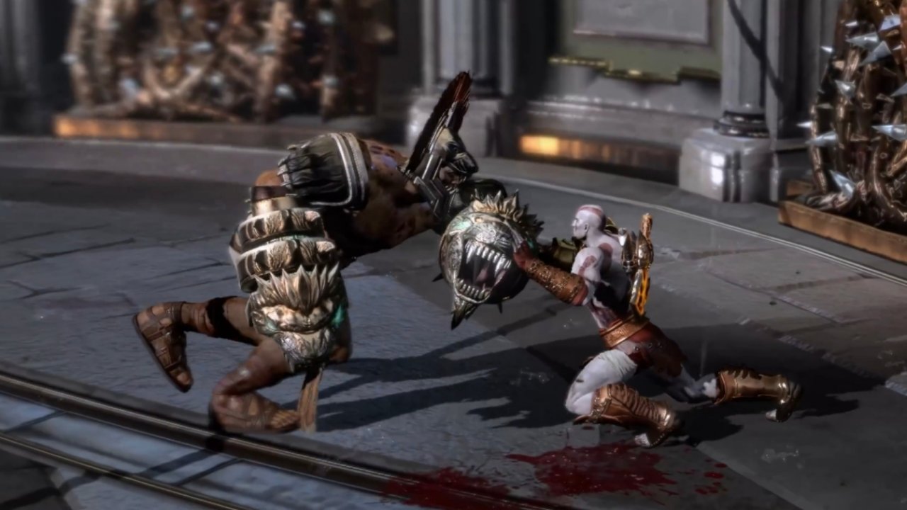 待后者踉跄前扑时,奎托斯染血的拳头已追袭而至,把他一拳摁在墙上。