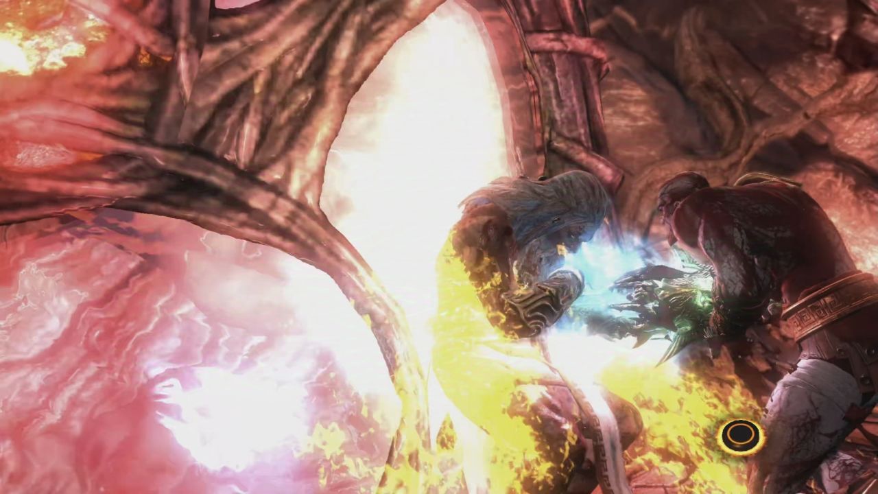 清醒过来的奎托斯可不管你这那的,跑到赫拉克勒斯背后照着腰子就是来两刀,趁着对方吃痛,还把尼米亚护手抢到自己手中,誓要让他也尝一尝自己武器的滋味!