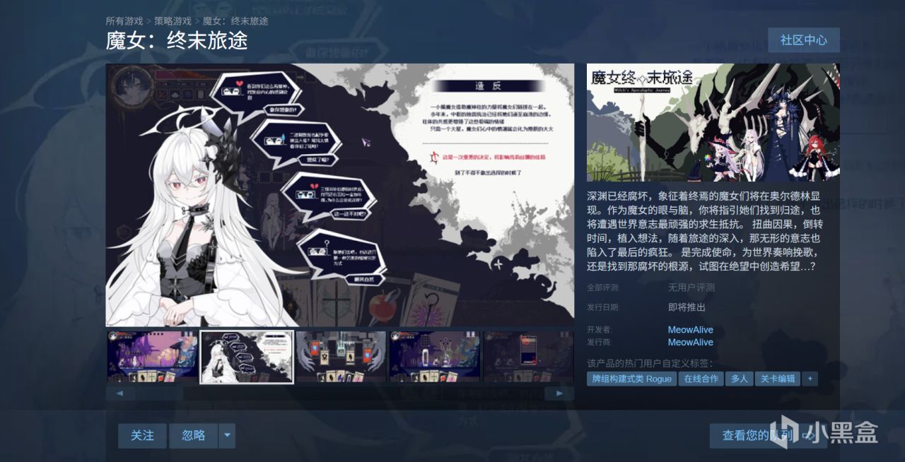 游戏名《魔女:终末旅途》,现已上限steam,欢迎加入愿望单。