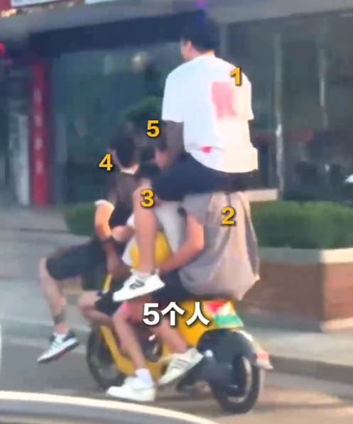 車頭坐1個,車座擠3個,肩上扛1個……近日,四川珙縣,5人同騎一輛電動車上路,被行政處罰。警方提醒:遵守交規,安全出行!別把生命當兒戲!