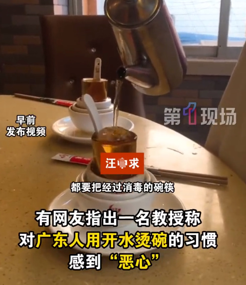 近日,一位教授發表“廣東人用開水燙碗令人噁心”言論的視頻在網絡熱傳,引發爭議。