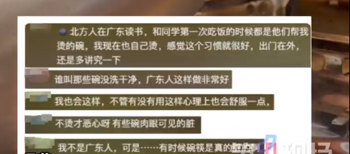 “廣東人用開水泡自己的碗筷,非常非常反感。比如你們廣東人每一次喫飯之前,都要把那個經過消毒的碗筷,再用開水重新泡一次,還要把那個塑料紙和泡碗的水,專門拿個器皿來倒在裏面,那個場景非常的糟糕……”