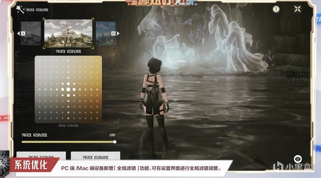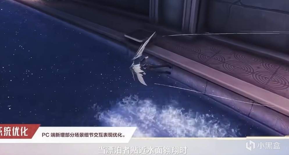 優化方面,又開始尖銳了,全局濾鏡功能,拍照可以直接在遊戲裏調整濾鏡了,你可以把拍攝的菲比白絲調的更少女一些,我說魚羣就在前面你耳朵龍嗎!還有環境交互細節升級,比如說現在一刀下去會帶動環境裏的落葉被刀風帶動飛起,使用翱翔時貼着水面飛會有水面被風吹開的效果,這個真帶勁,想起2.2救空中落海小卡的動畫部分了~