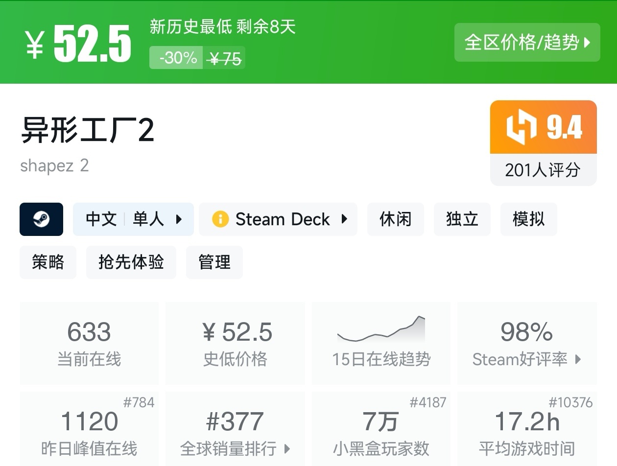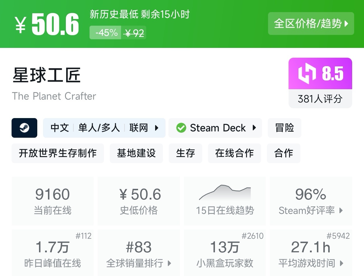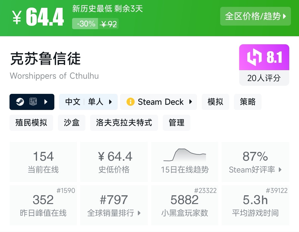 大家好,沒錯,又是我,你們的老朋友亦然,最近Steam可以說折扣遊戲很多很多,當然新史低的遊戲一樣很多,其實新史低遊戲買起來最有安全感,至少在很長一段時間都不會更低,更不容易因爲價格被背刺,我將爲各位進行一個彙總,希望我的彙總,能夠幫助各位盒友挑選心儀的遊戲。