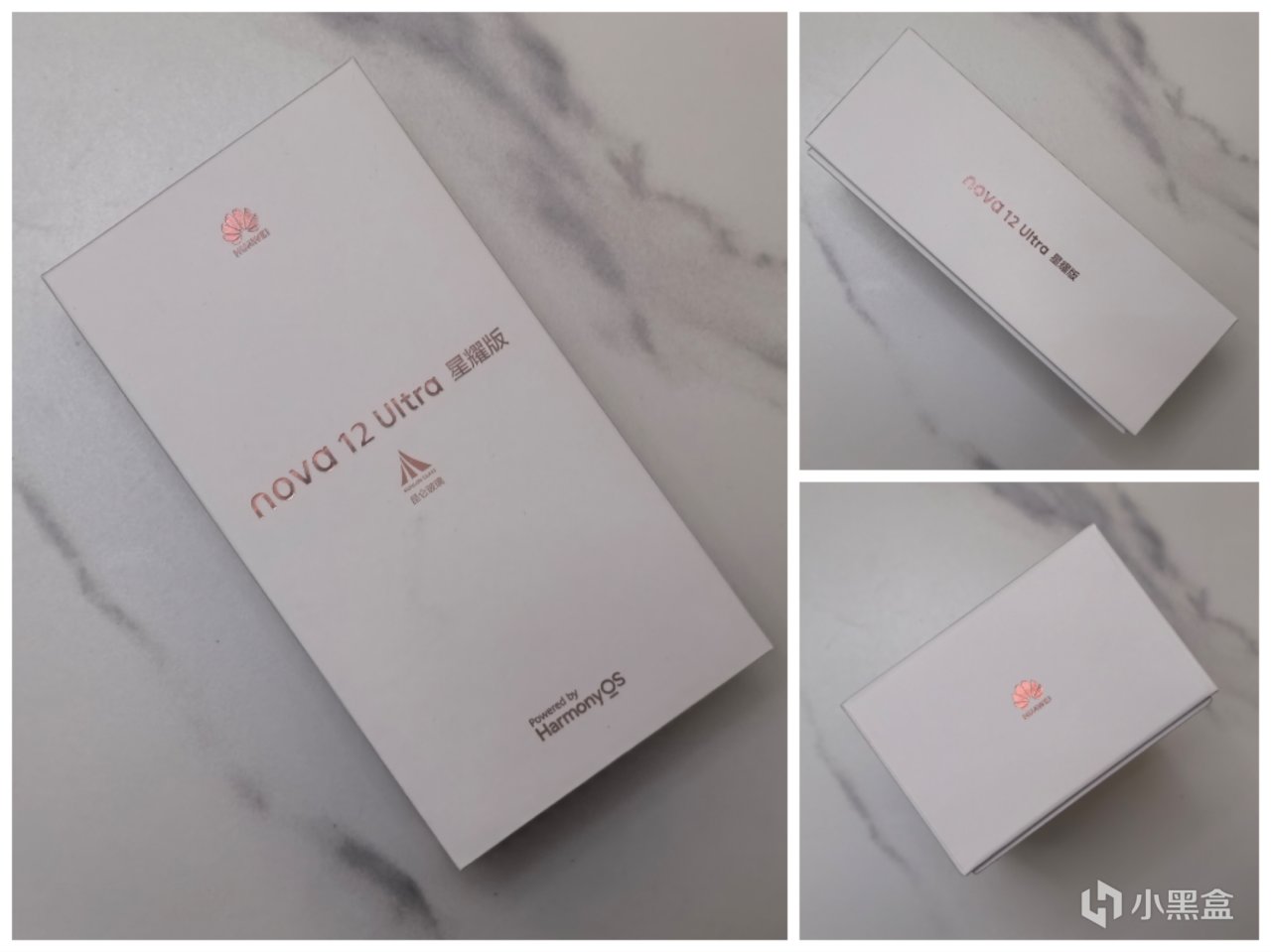 包装盒整体设计简洁大方,采用纯白色作为主色调,给人以清新、现代之感。盒盖上方印有华为的品牌标志和“HUAWEI”字样,字体采用玫红色,与白色背景形成鲜明对比,显得十分醒目。包装盒正面中央位置以玫红色字体醒目地标注着“nova 12 Ultra 星耀版”,清晰易识。包装盒下方印有“Powered by HarmonyOS”字样,表明这款手机搭载了华为自家的HarmonyOS操作系统。