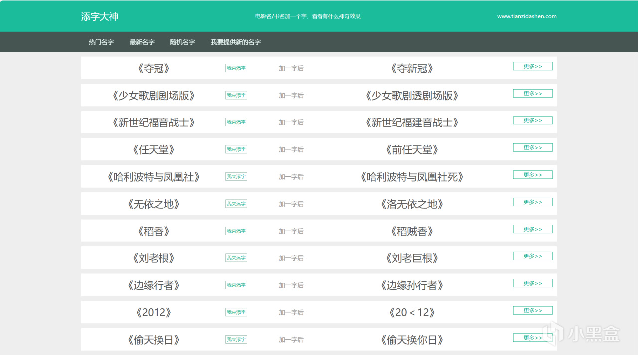 网站可以在线给一部电影的名字加一个字,虽然只加了一个字,但出来的效果却相当的炸裂