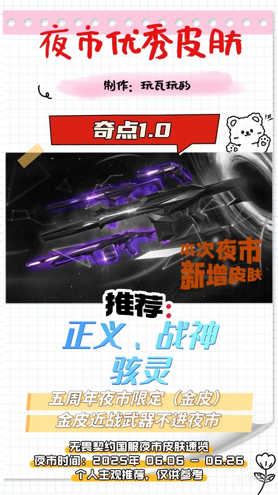首先說說本次五週年限定的金色槍皮,三套皮膚裏面的近戰武器都不會進入夜市。