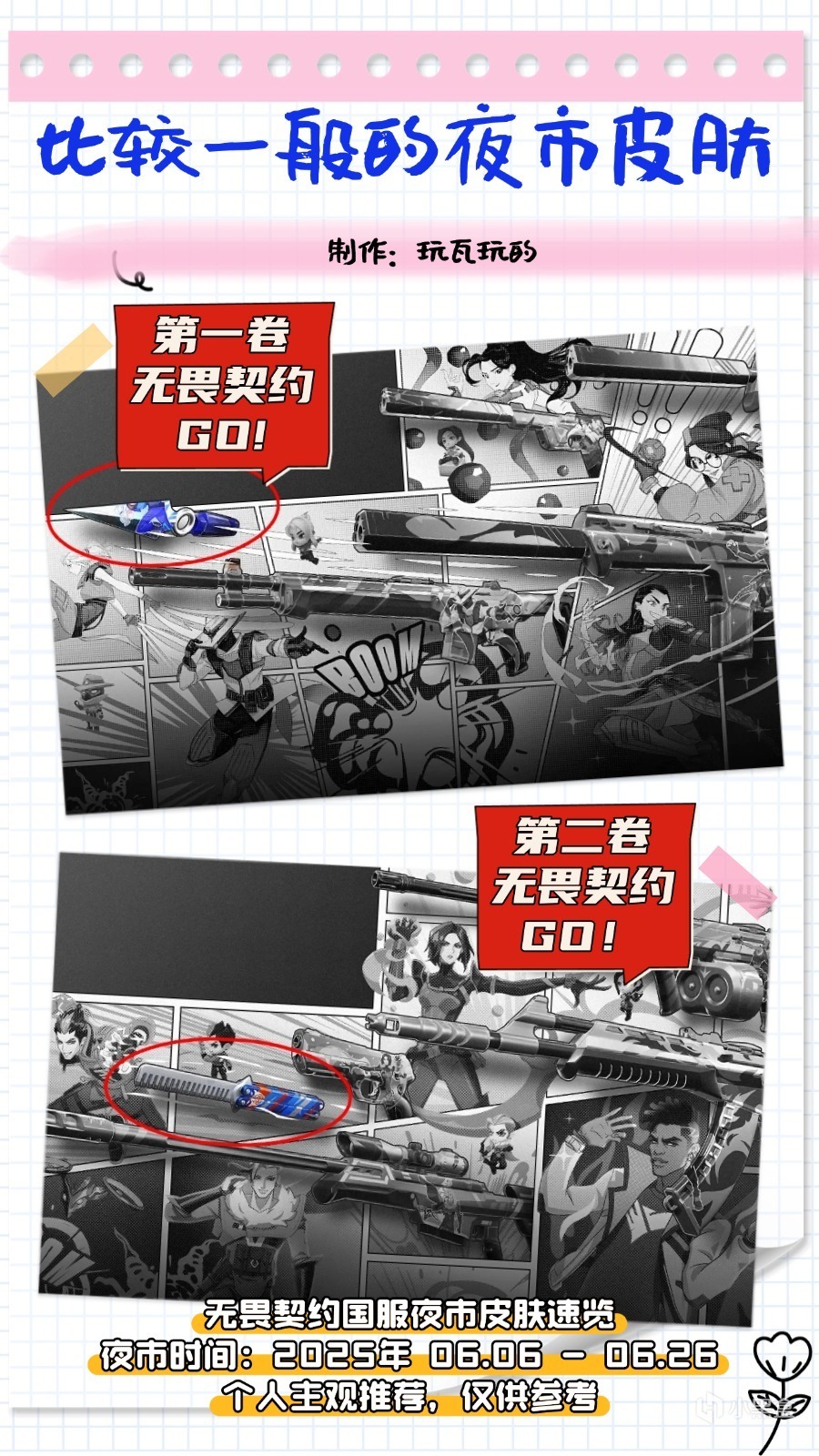 第一卷:無畏契約GO!和第二卷:無畏契約GO!這兩套皮膚的近戰武器分別是苦無飛鏢和梳子蝴蝶刀,喜歡捷風和夜露的玩家可以留意。