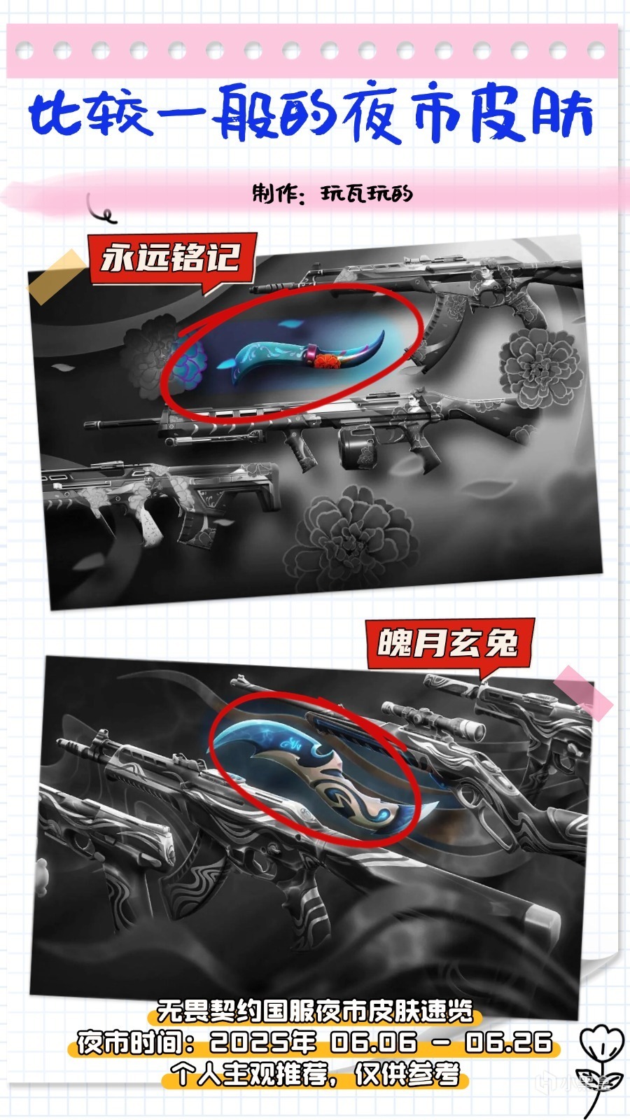 首先是永遠銘記和魄月玄兔套裝中的近戰武器,都是不錯的反手刀,反手刀愛好者可以留意。