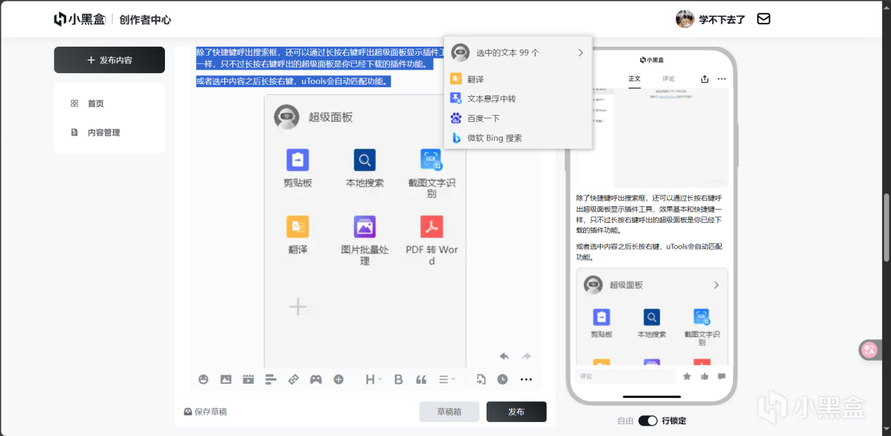 或者選中內容之後長按右鍵,uTools會自動匹配功能。