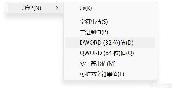 Settings在此文件夾下,在空白鍵點擊右鍵,新建DWORD(32位)值(D) 命名爲: