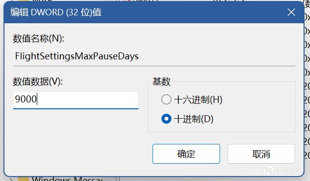 雙擊打開此命名文件,選擇十進制,左側輸入停止更新的天數,輸入多少都可以,我輸入的是9000,然後確定,