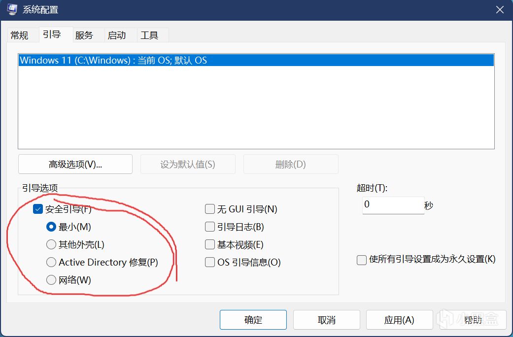 之後點擊重新啓動即可打開安全模式,想要退出安全模式是相同步驟,然後最後把“安全引導”取消勾選即可