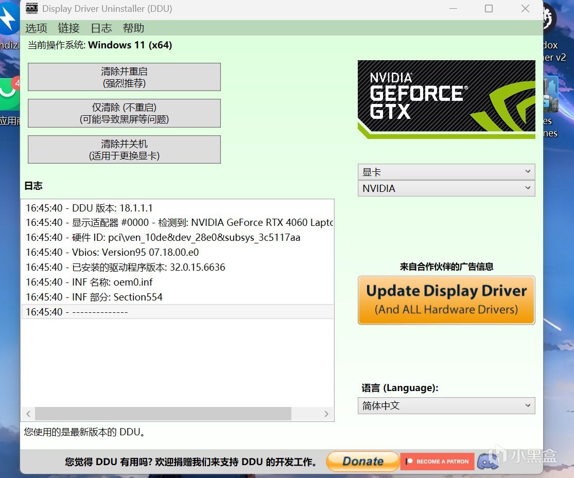 DDU的使用最好開啓電腦安全模式再使用,否則可能會出現問題,