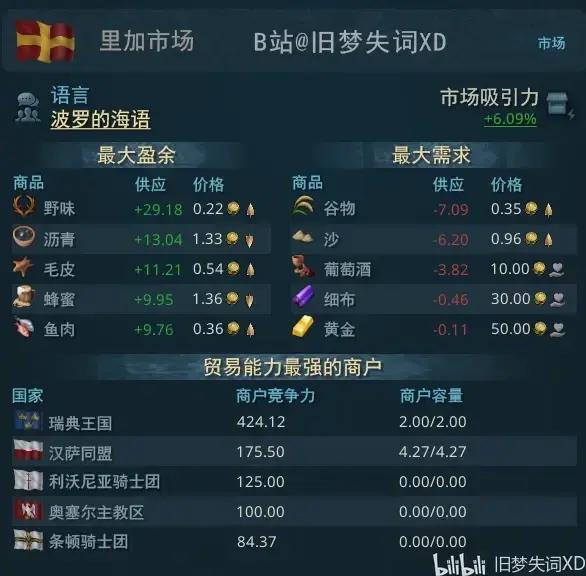 市場裏的商品供應主要來自四個途徑。前兩個是來自資源生產作業以及來自生產建築,也就是我們在生產部分介紹過的內容。第三個稱爲基礎生產,指的是黏土木頭沙子石頭這些建材在每個市場裏有一個保底生產量,哪怕這個市場裏沒有任何一個地點生產這些建築材料。我估計這是爲了讓一些產物過於貧瘠的小型市場也能有基本的建造能力吧。第四個是市民階層自發的貿易。他們會主動去附近的市場裏買一些自家市場裏緊缺的商品回來,並從中獲利。一些法律和特權能影響這種自發的貿易,比如漢薩同盟的“貿易壟斷”特權,會削弱玩家主動拉貿易的能力,但能大幅增加市民階層自發貿易的效果。