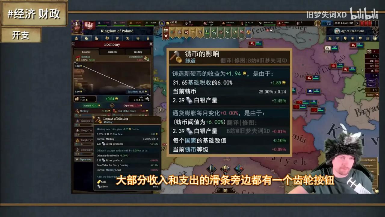 市場裏金銀的產量會在給鑄幣收入帶來加成的同時,也會給整個社會造成通貨膨脹,通脹幅度由金銀生產佔社會總生產的百分比來決定。玩家也可以通過滑條來調節鑄幣水平。