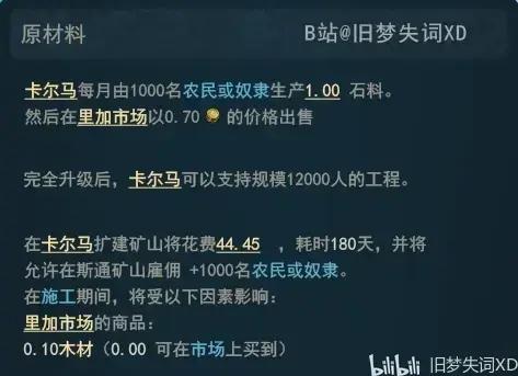 建築的建造也是有條件的。造建築需要用到石頭木頭還有其他建造材料,如果市場裏沒有相應的建造材料的話,建築的建造就會停滯。同樣的道理也適用於修路、造船、造兵還有擴建資源生產作業,沒有相應的原材料供應就無法推進進度。