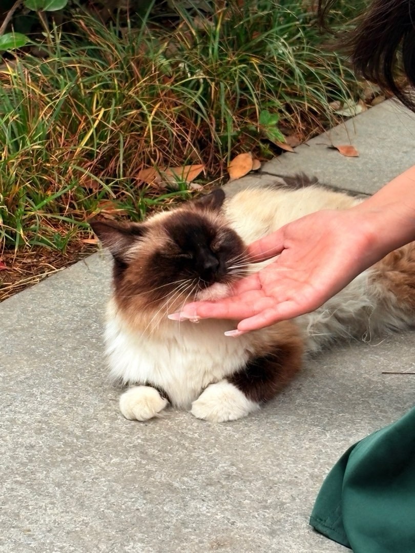 ★此時一個姐姐正在撫摸它,這位黑臉貓僧似乎一臉享受。