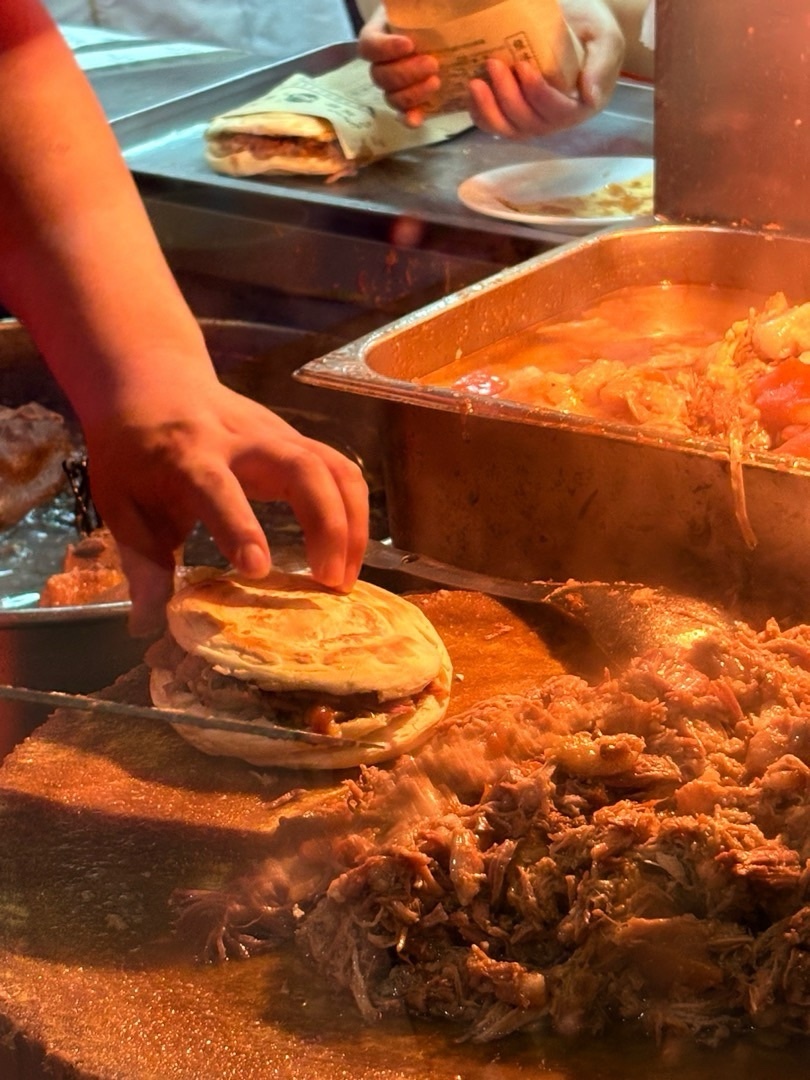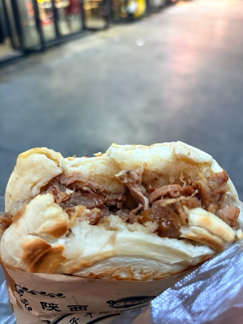 ★這家店叫子午路張記肉夾饃(翠華路店),超級多人排隊,爲了這一個肉夾饃,大河排了能有半個小時。