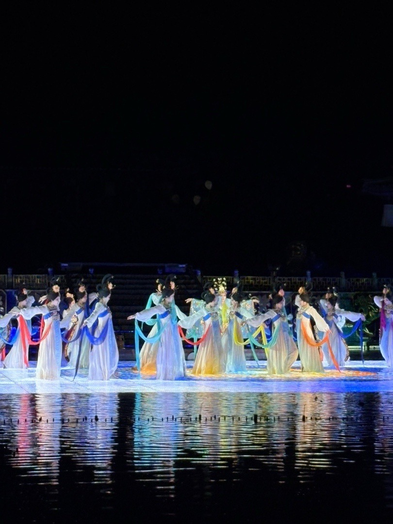 ★長恨歌就在華清宮裏面演出,推薦買中區的票,東西區都太靠邊了,感覺觀賞體驗不是很好,座位是隨機分配的,大河抽到了第一排,體驗感拉滿,缺點是噴泉和放火的時候,會被水淋和感受到撲面而來的熱浪。