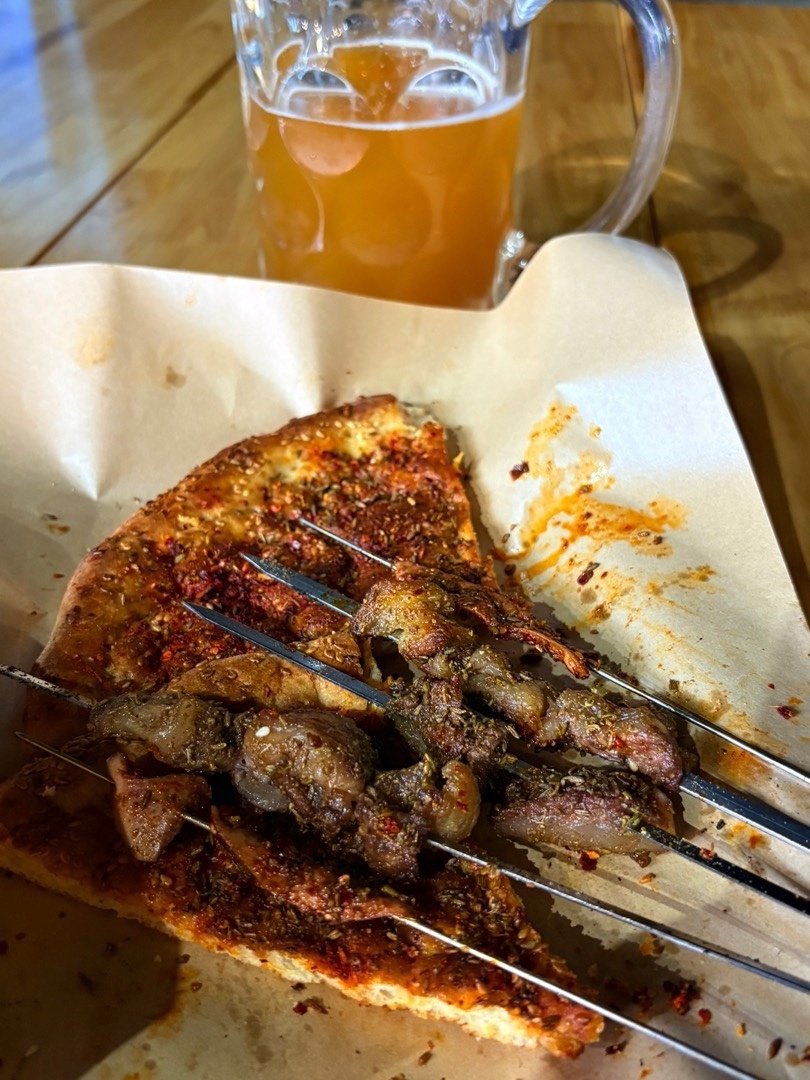 ★其實不是披薩是烤饢,但大河感覺不好喫,乾巴巴的像餅乾,串還可以,大河比較少喫燒烤,主要是路過的時候被香味吸引了。