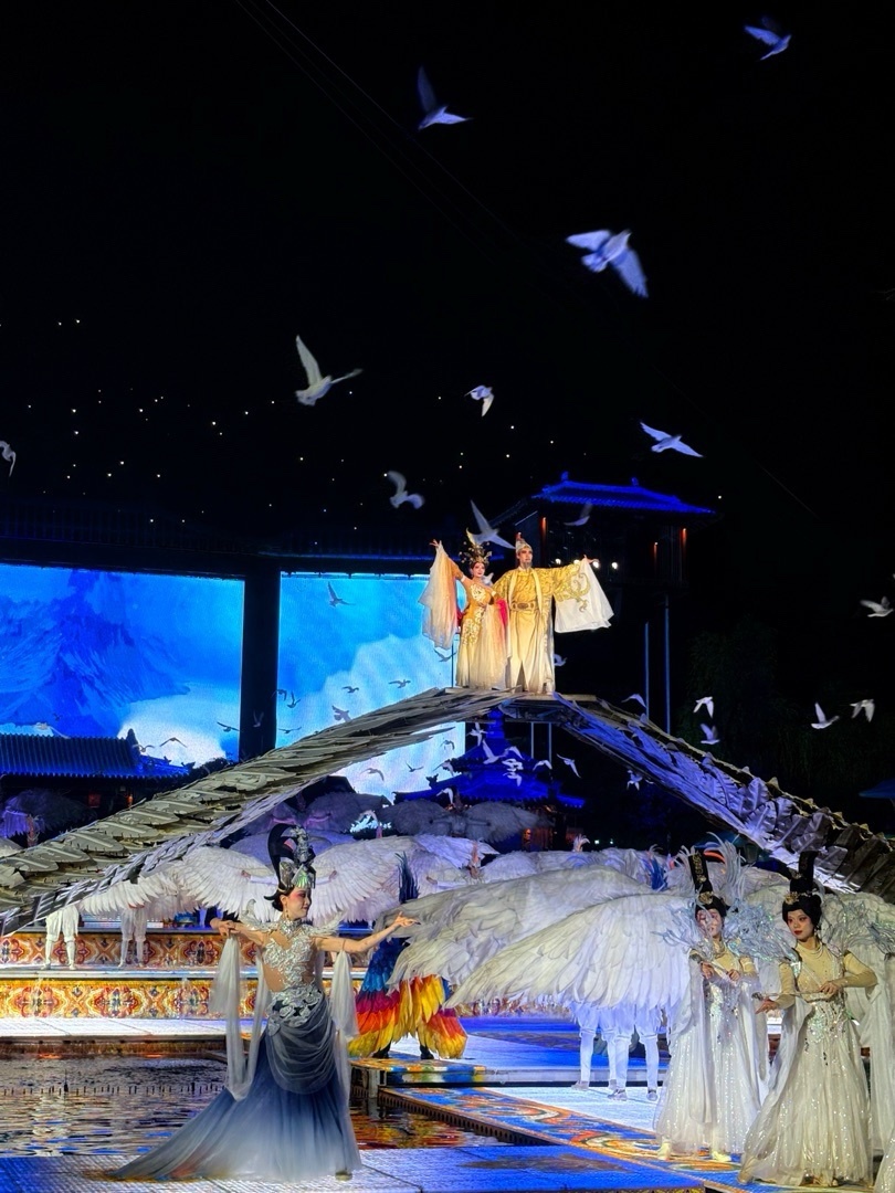 ★大河印象比較深的有三幕,特震撼,第一幕是剛開始的舞臺由暗轉明,第二幕是安史之亂,第三幕是最後唐玄宗和楊貴妃重逢,白鴿飛舞,居然是真的鴿子!