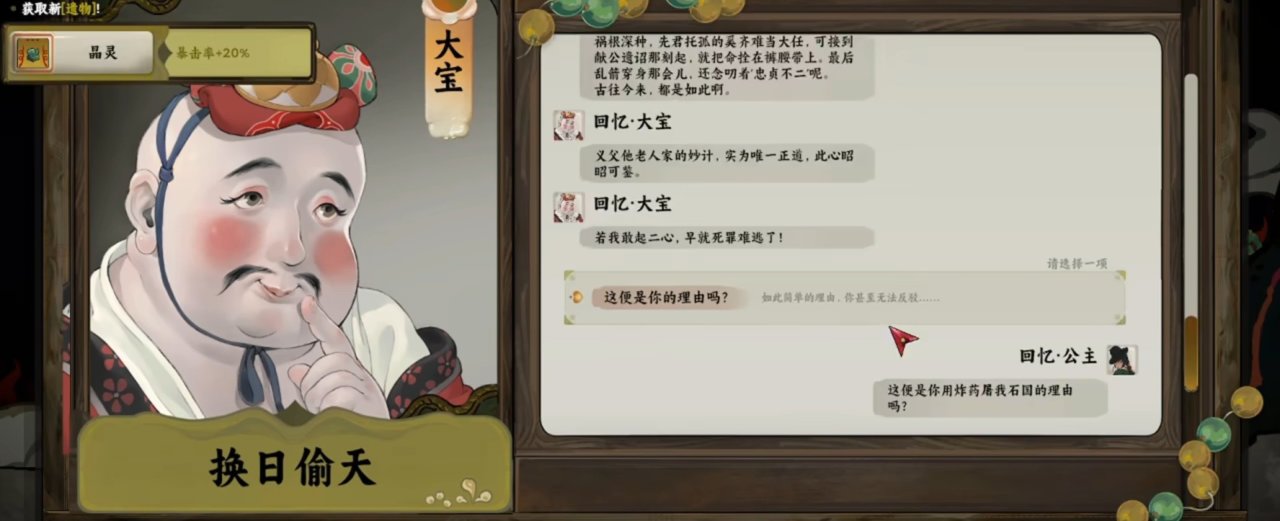当然游戏中最重要的还是剧情和音乐。我刚刚之所以说长安这个背景故事设定非常好,就是因为他本身就是非常依赖剧情故事的一款游戏,他有超级多的句型选择点,很多选择点关乎你可以获得的收集物以及后续的挑战。而我刚刚也说过很多收集物是直接和局外成长相关联的,一步一步丝丝入扣,让人获得很新奇的体验。