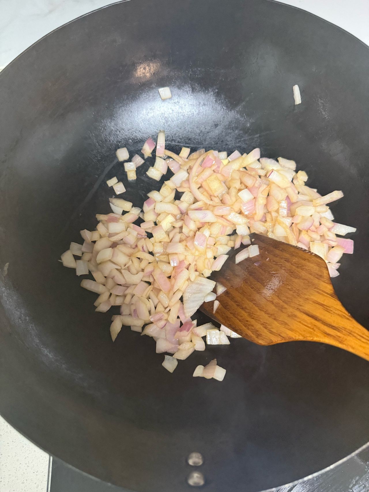 锅热喷油,(6-8下即可),先炒洋葱至微微变色)