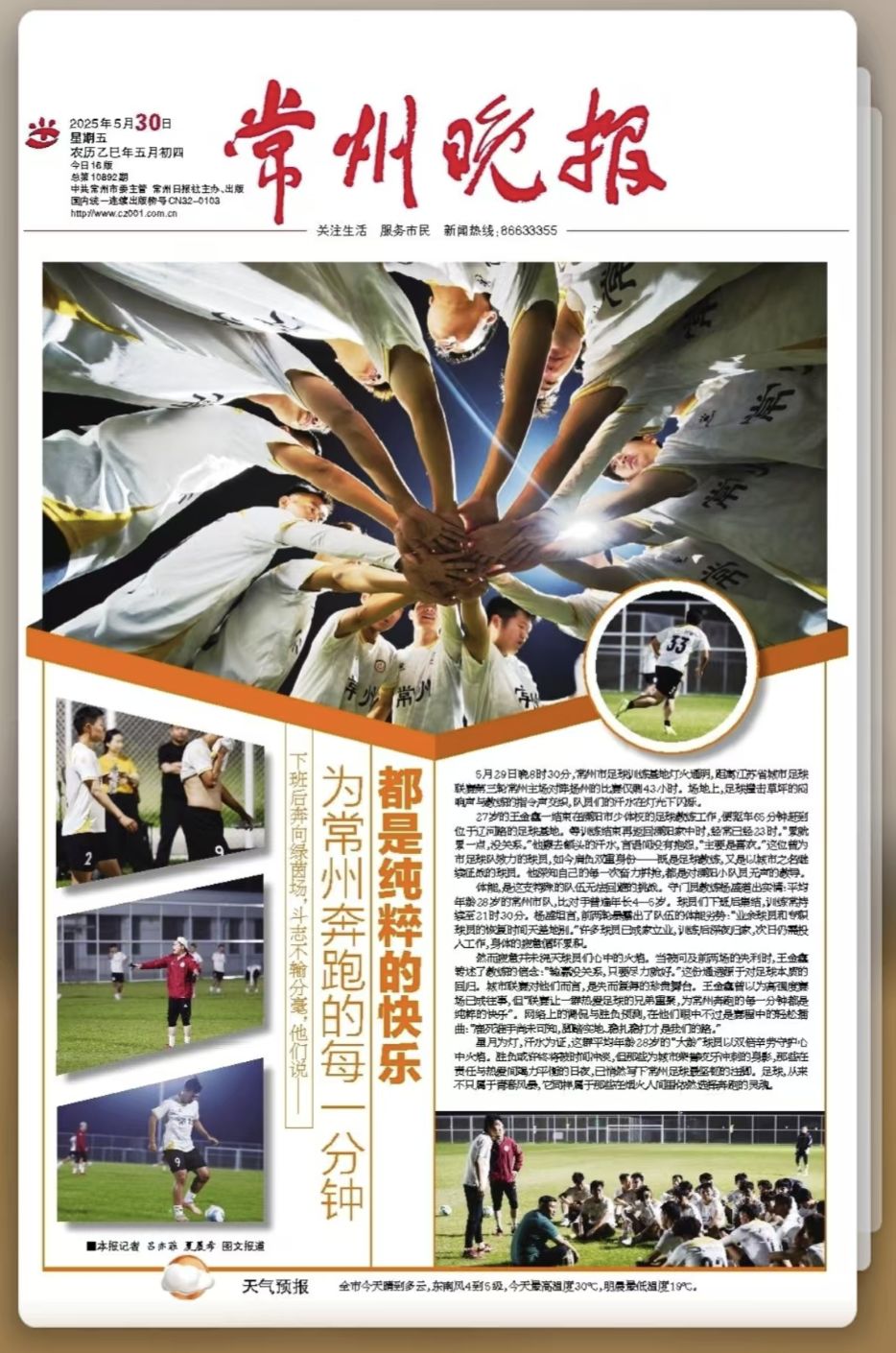 5月30日的《常州晚报》刊登了这群汉子的故事,首页这张仰拍所有人手叠手打气的照片意外地打动着我。
