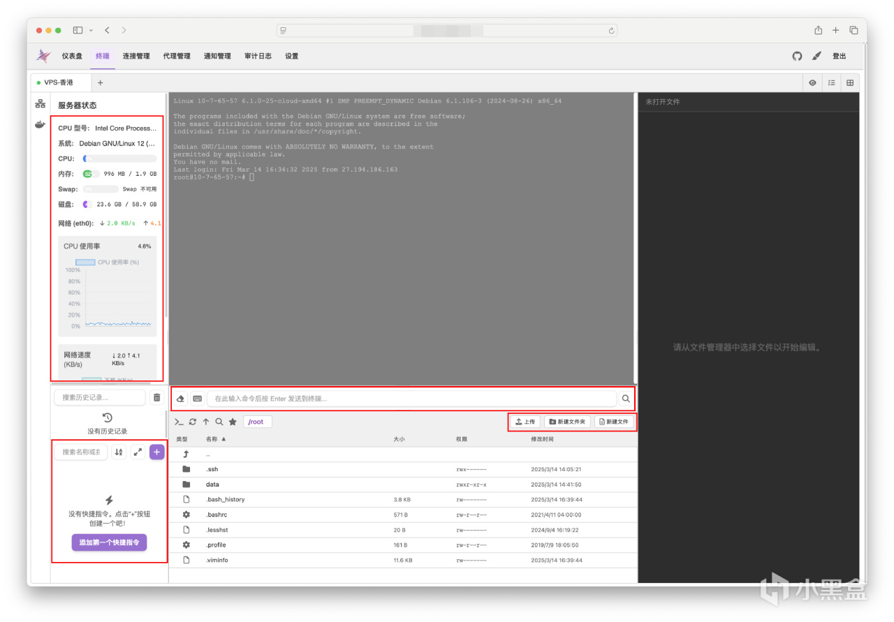 从发现到使用至今已经一年多,非常喜欢这个项目。但就在近期,我又发现了一个更棒的:星枢终端(Nexus Terminal)。星枢终端(Nexus Terminal)是一款现代化、功能丰富、开源的Web SSH / RDP / VNC客户端,致力于提供高度可定制的连接体验。提供独立的本地桌面端。