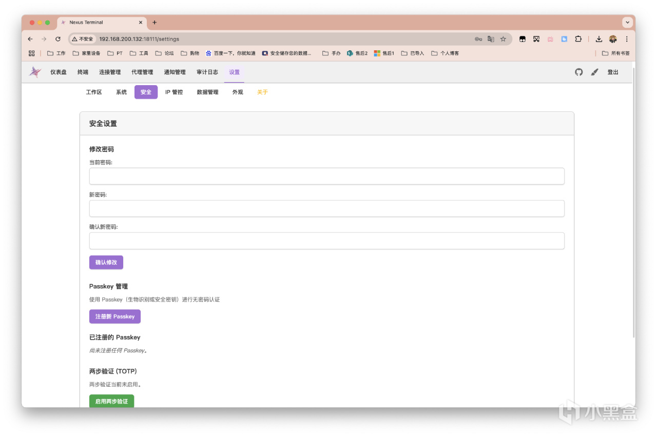 设置中还支持:界面工作板块调整、Passkey 管理、启用两步验证、IP黑/白名单管理、数据导出备份、外观更改、更新提醒等功能。这里我就不一一详细介绍。