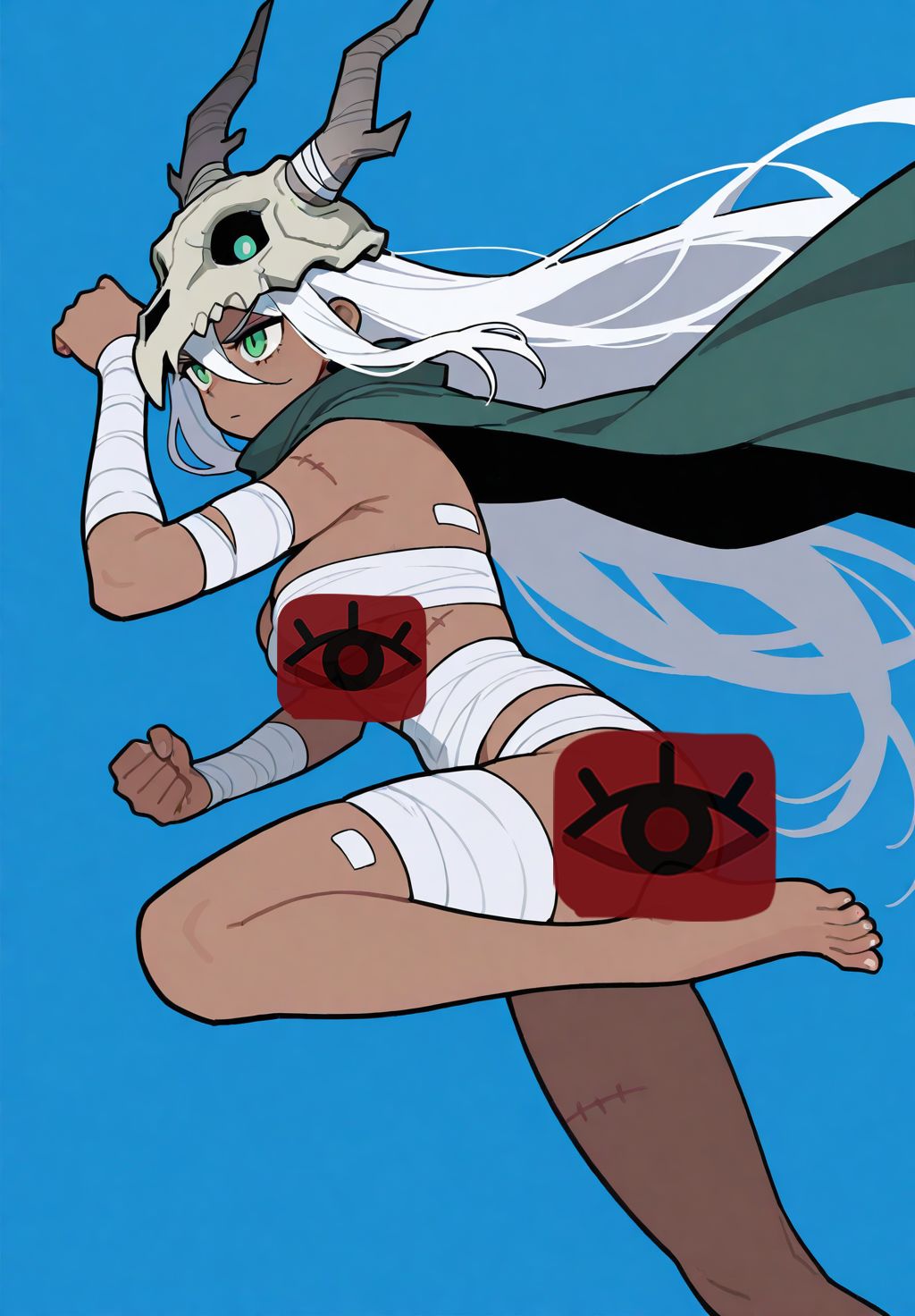 我加深了兩隻大手和手臂的陰影,然後讓史萊姆更晶瑩剔透了一些。之後仿照原版繪製了背景,給獵豹加上了紅色描邊。