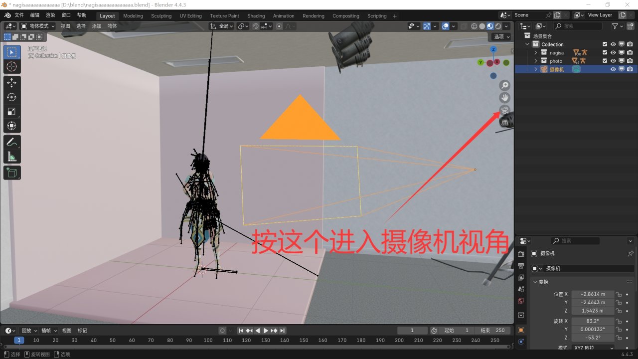 使用G+X/Y/Z調整攝像機位置。