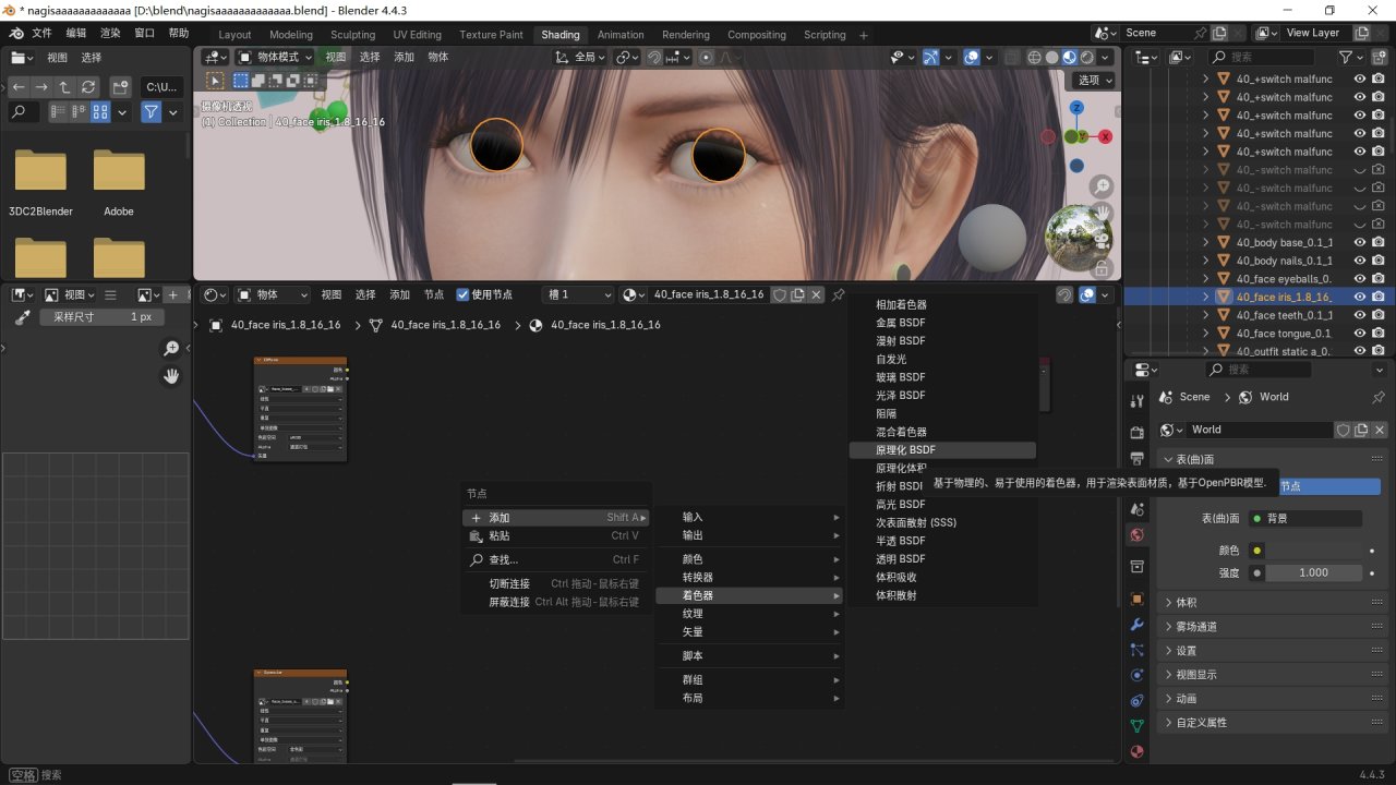 左鍵單機選中模型自帶的xps shader,按delete刪除,再按右鍵新添加一個原理化BSDF節點。