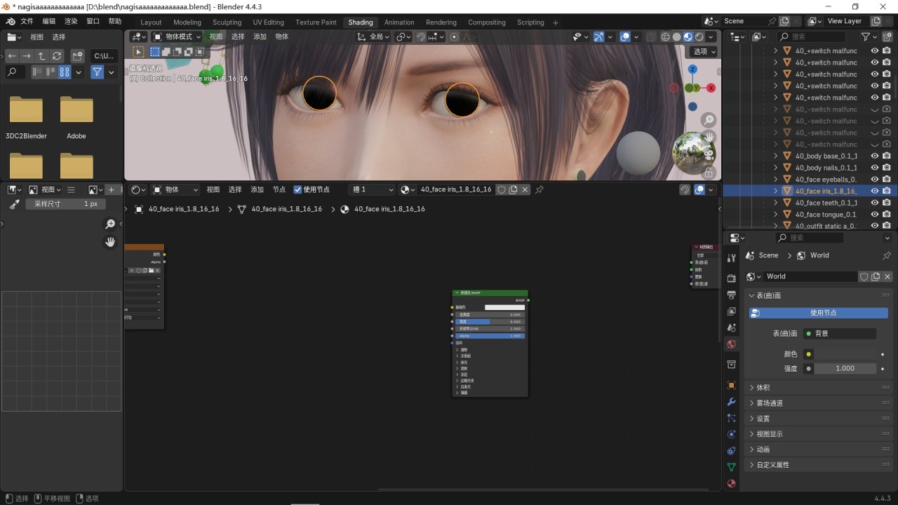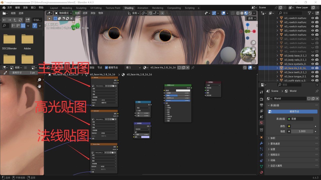 如果模型的眼睛有其他部分,也要進行同樣的操作,模型中其他的材質也可以直接按照這個來編輯。