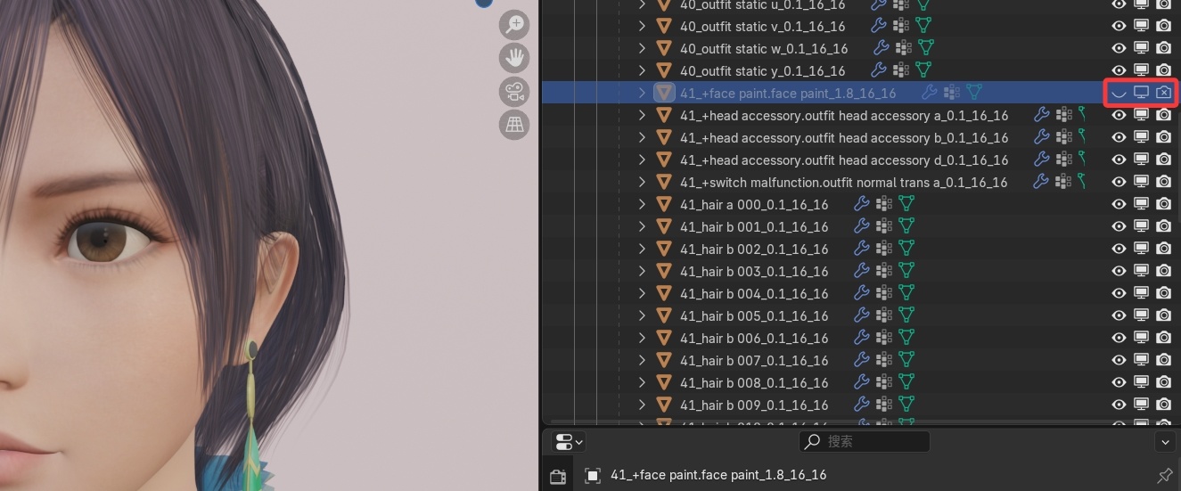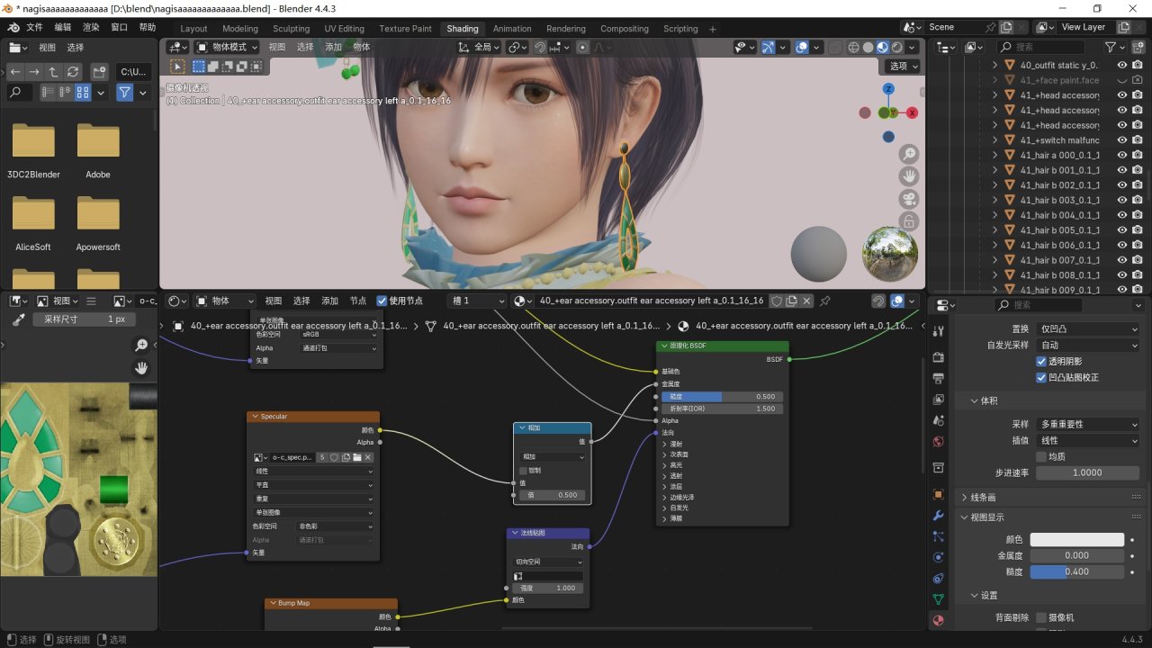 耳環等金屬的高光貼圖可以將連接糙度改爲金屬度,提升質感。