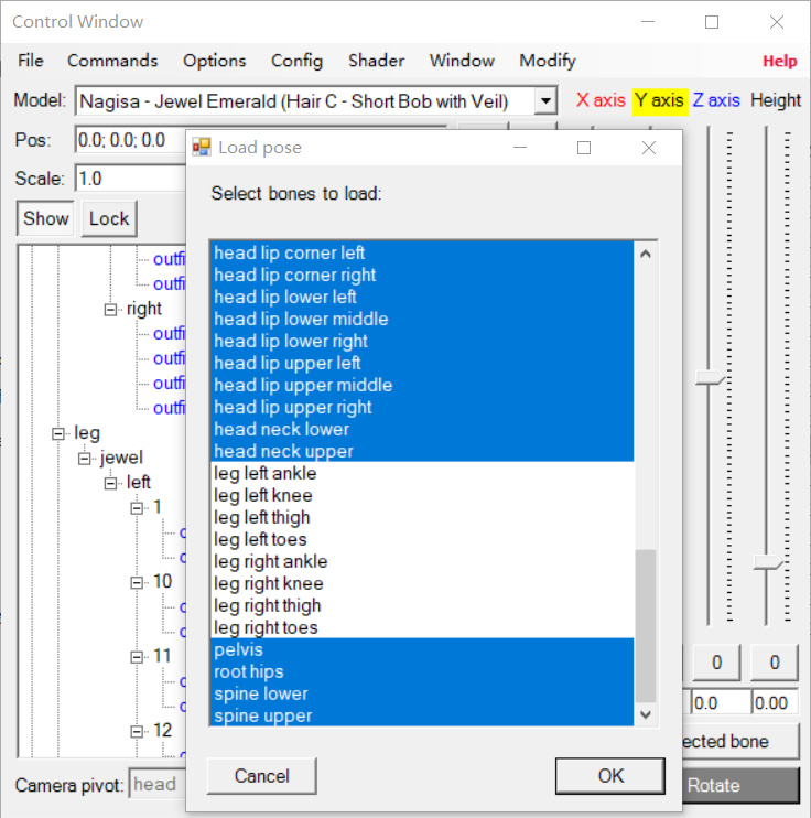 姿態模式下選中骨骼,在右邊骨骼屬性中可以實現跟XNA中類似的編輯效果。視圖中shift+左鍵可以多選物體。右方列表按ctrl加左鍵可以多選。骨骼同樣適用於移動縮放旋轉,靈活運用吧!