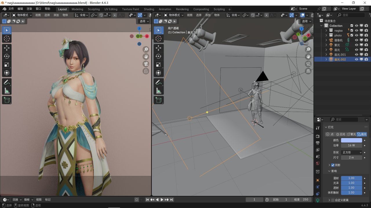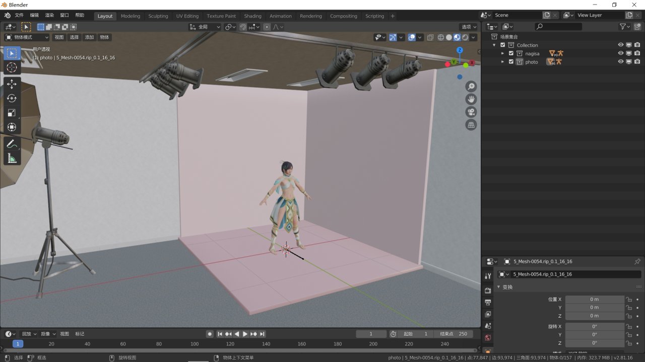一般有這三個光就可以使角色模型變得有質感了。不過我的打光技術特別差,大家還是得適當自行調整參數,有興趣可以去b站學習更高質量的打光技巧。