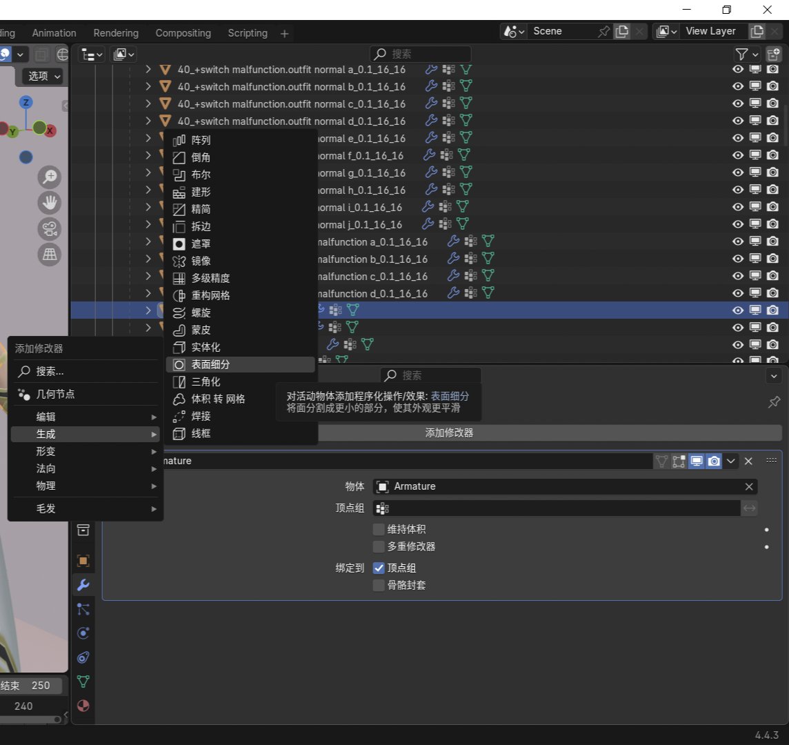 你會發現模型的身體變得更加圓潤了,如果一些未細分的零件或衣服與原來的身體有明顯縫隙,那就從前面的按距離合並開始做,給他它也加一個細分。